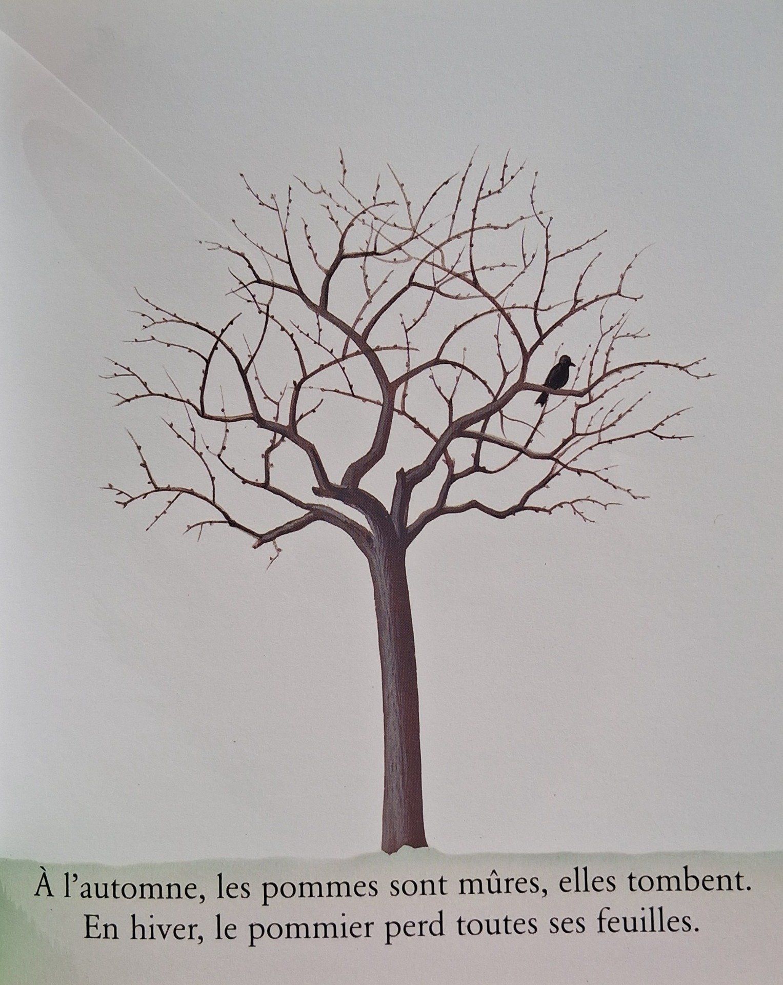 Dans une pome rouge, jaune ou verte, il y a toujours du blanc et des pépins. Le pépin mis en terre devient le pommier..