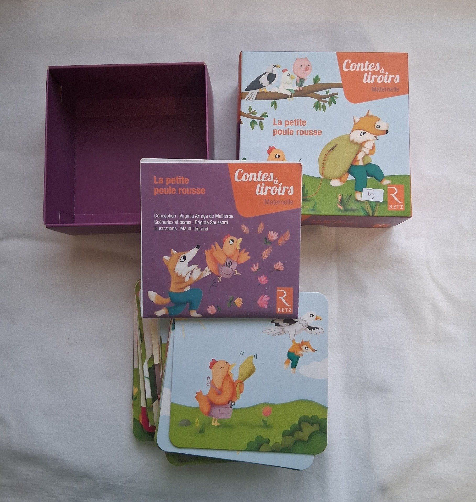 La boîte «La petite poule rousse» Maternelle - CP fait partie de la collection «Contes à tiroirs». Elle contient des cartes-images séquentielles que les élèves manipulent pour reconstituer le conte et le raconter. Ils travaillent ainsi la chronologie et leur vocabulaire en s'amusant !