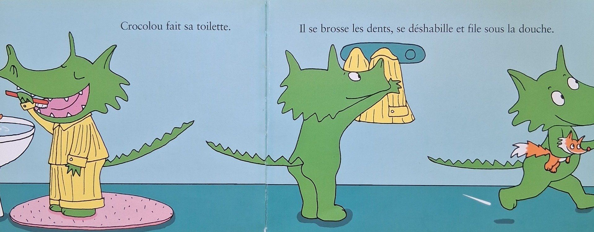 Crocolou fait sa toilette et se pomponne. Il hésite sur sa tenue : chemise ou sweat-shirt, costume d'indien ou de magicien ? Pas de doute, c'est en super-héros qu'il se préfère !
