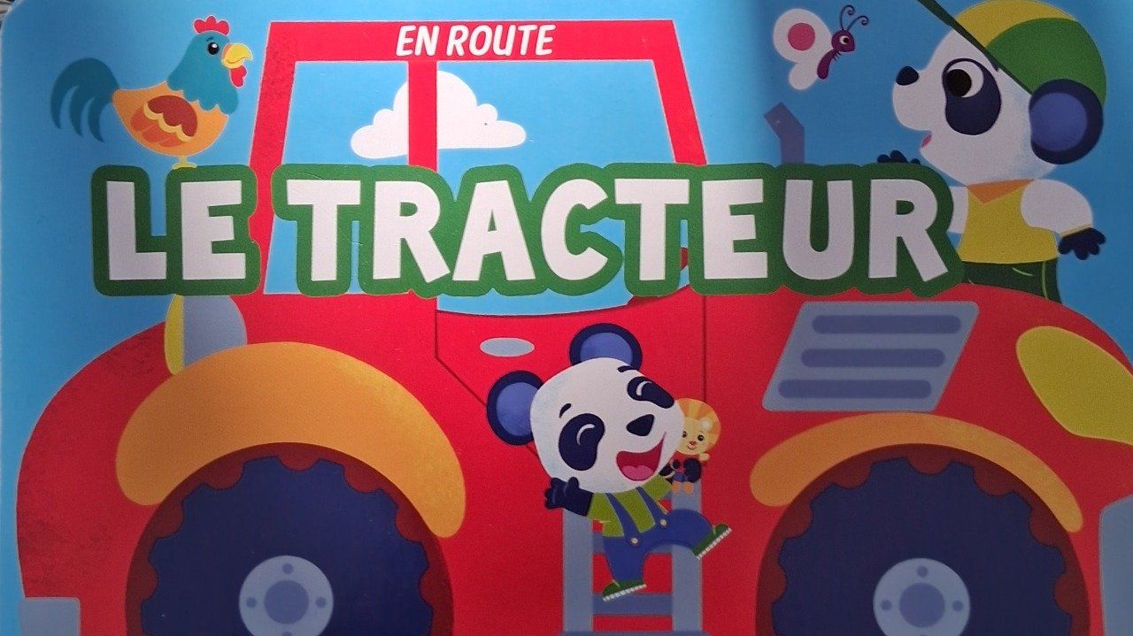 Livre tout carton en forme de tracteur.