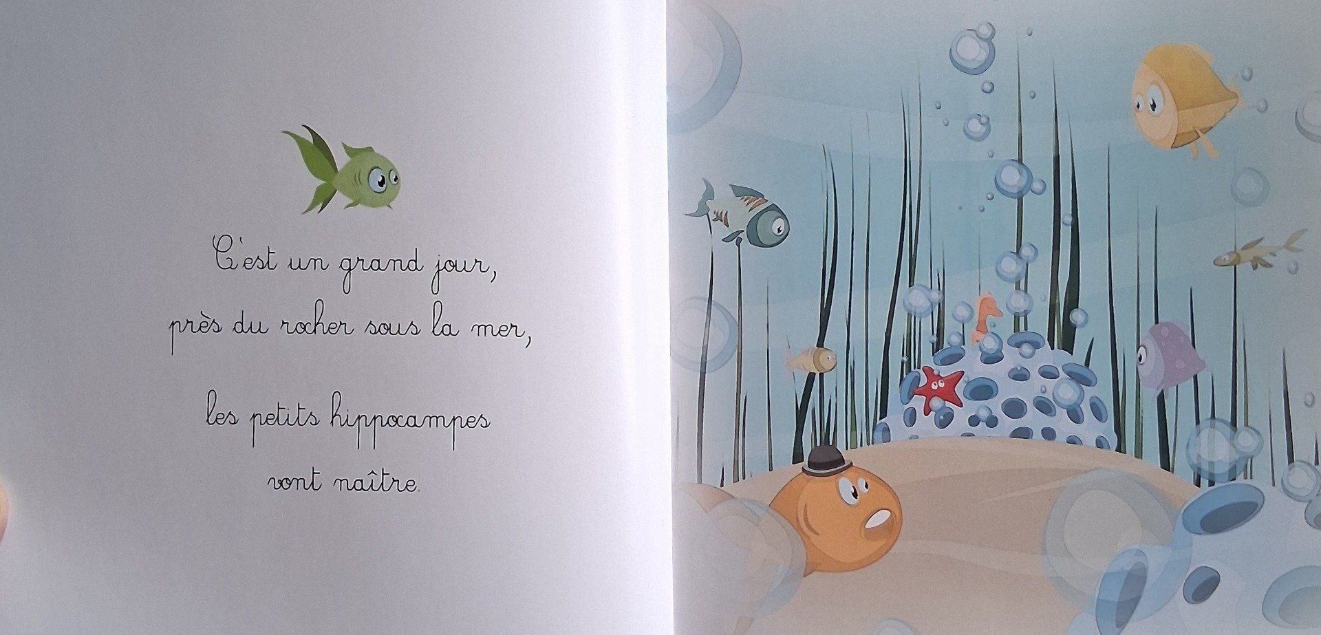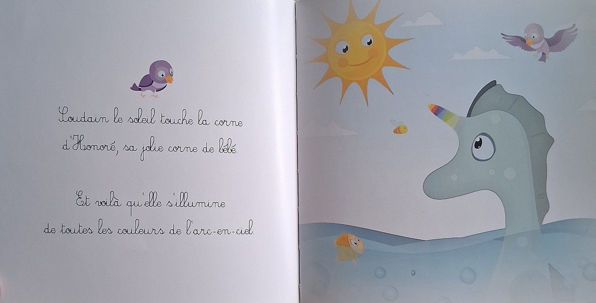 L'histoire d'Honoré petit Hippocampe différent qui est né avec une petite corne sur la tête.