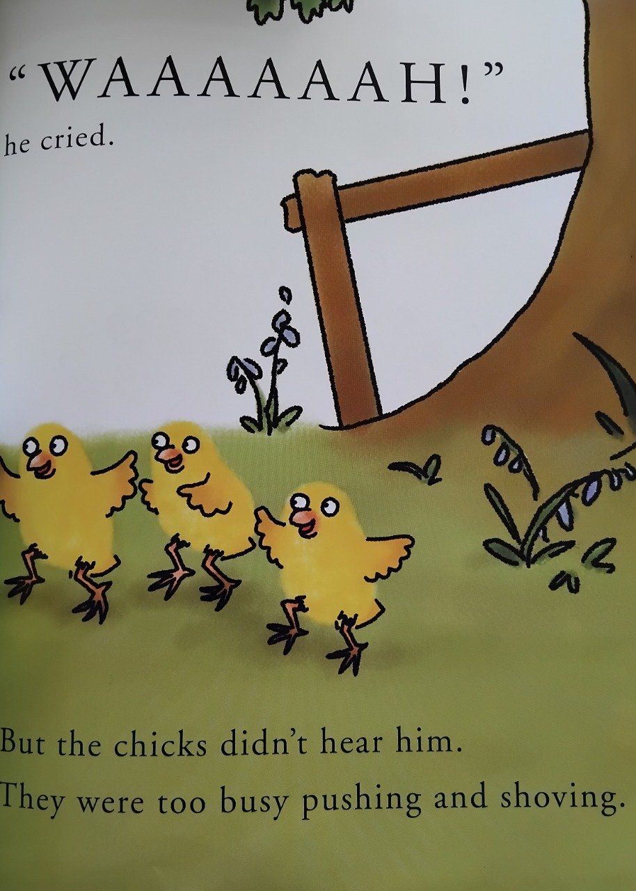 Baby Owl is having a hard time reading a story to the little chicks. Poor baby Owl !