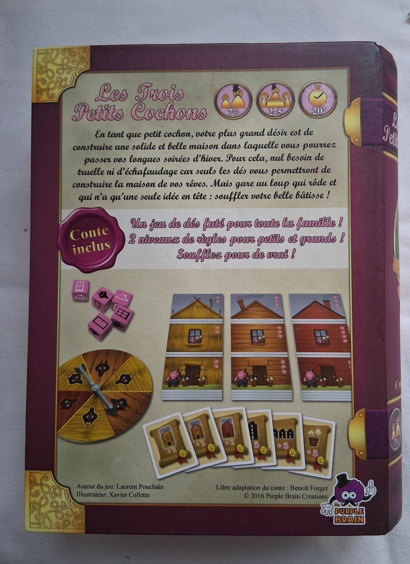En tant que petit cochon, votre plus grand désir est de construire une solide et belle maison dans laquelle vous pourrez passer vos longues soirées d’hiver. Pour cela, pas besoin de truelle ni d’échafaudage car seuls les dés vous permettront de construire la maison de vos rêves. Mais gare au loup qui rôde et qui n’a qu’une seule idée en tête : souffler votre belle bâtisse !