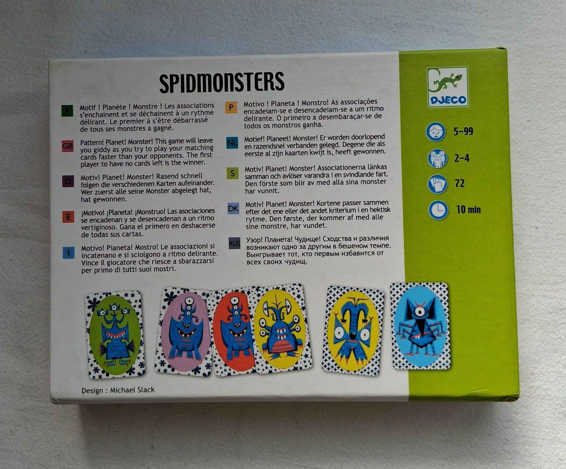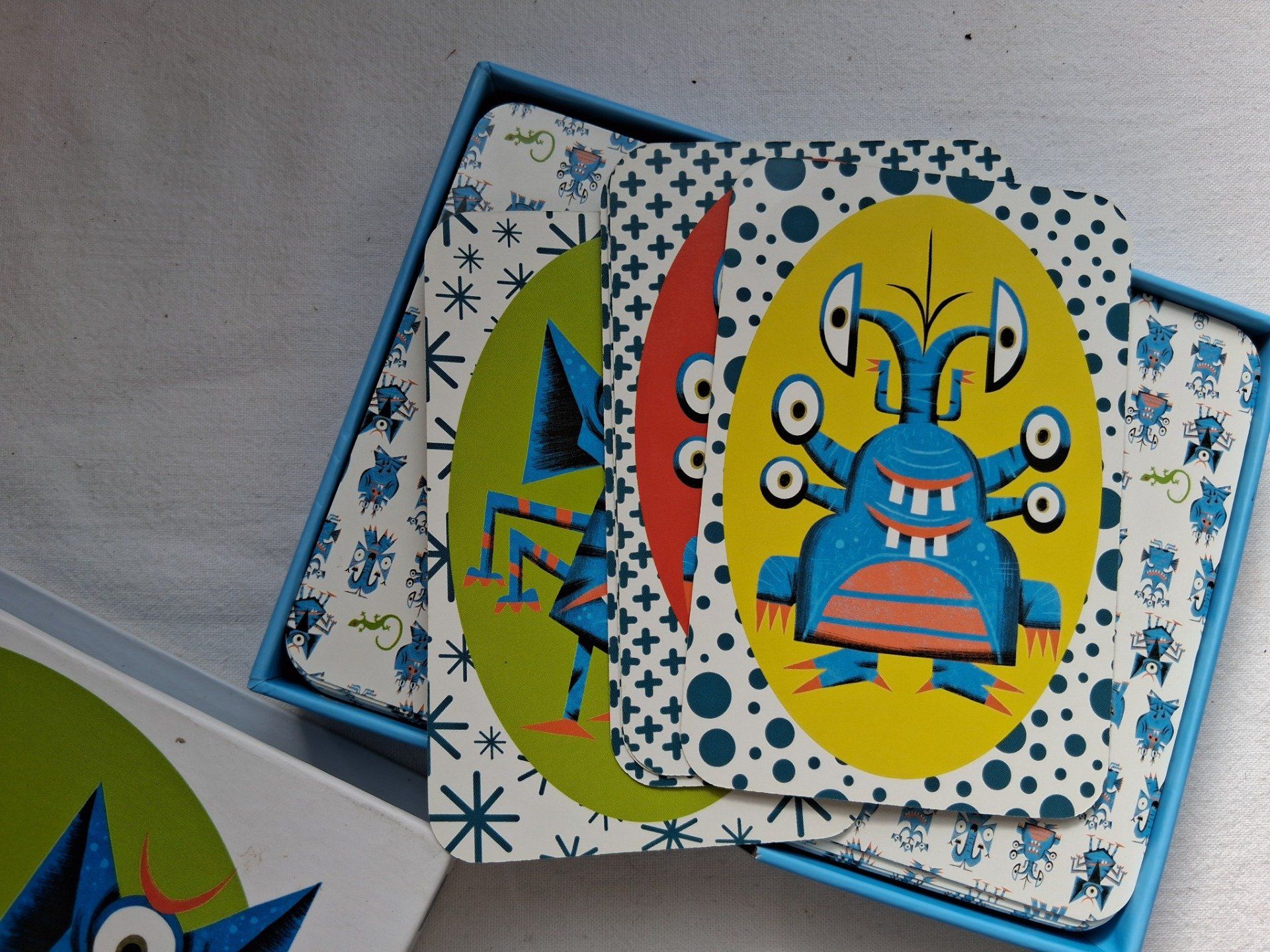 Motif ! Planète ! Monstre ! Les associations s'enchaînent et se déchaînent à un rythme délirant. Le premier à s'être débarrassé de tous ses monstres a gagné. (72 cartes)