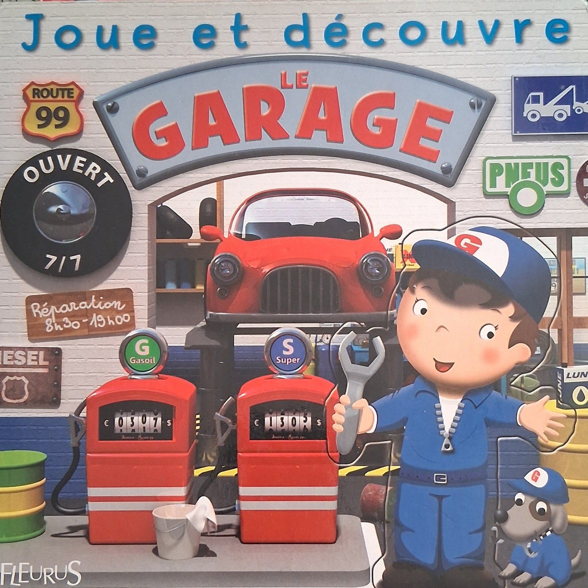 Un livre-jeu pour permettre à l'enfant de découvrir un garage et de s'inventer des histoires en s'amusant avec des pièces détachables.