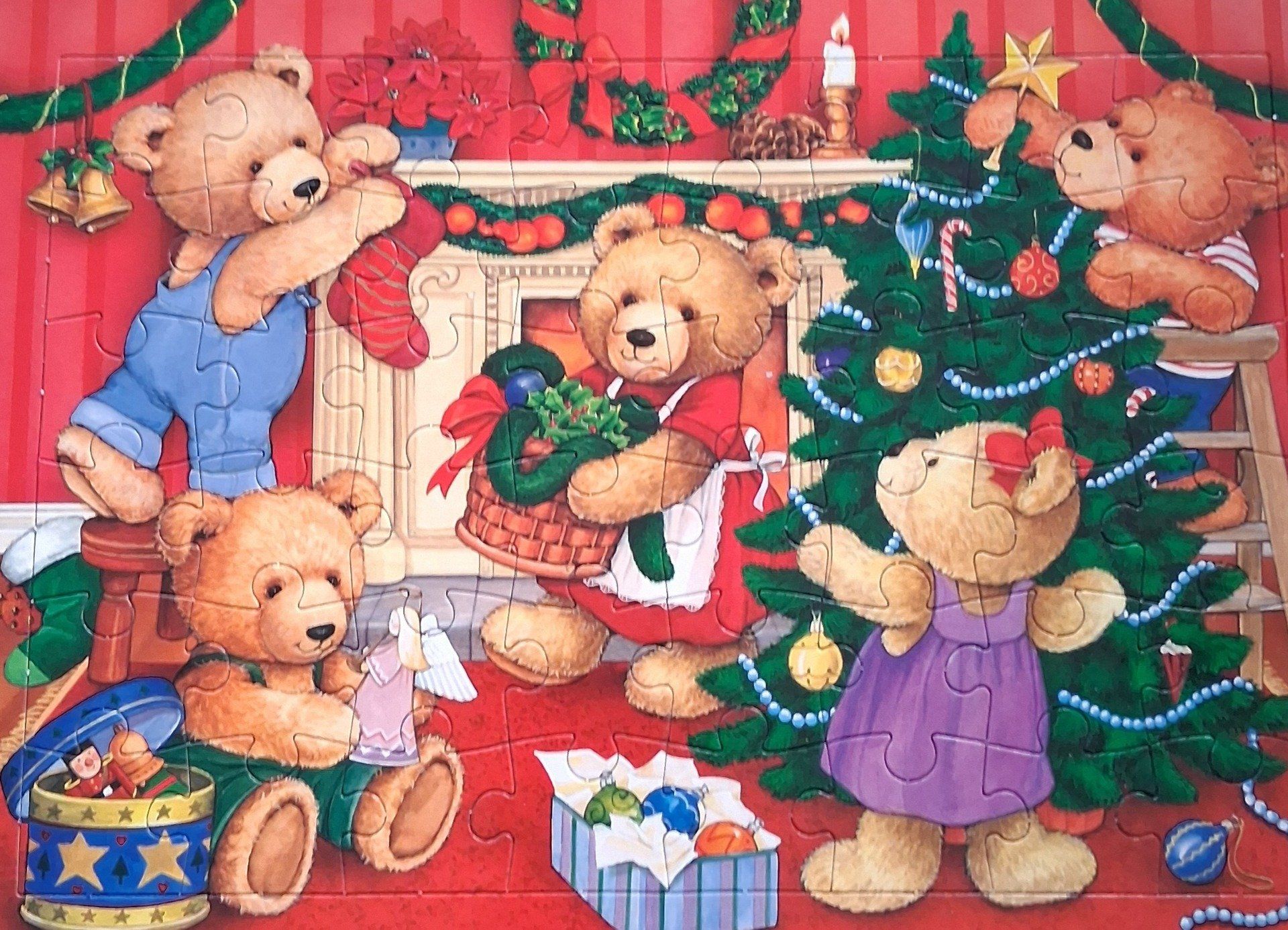 C'est bientôt noël ! En attendant le Père Noël les ours en peluche sont très occupés à décorer leur maison; à chanter et à s'amuser sur la neige !