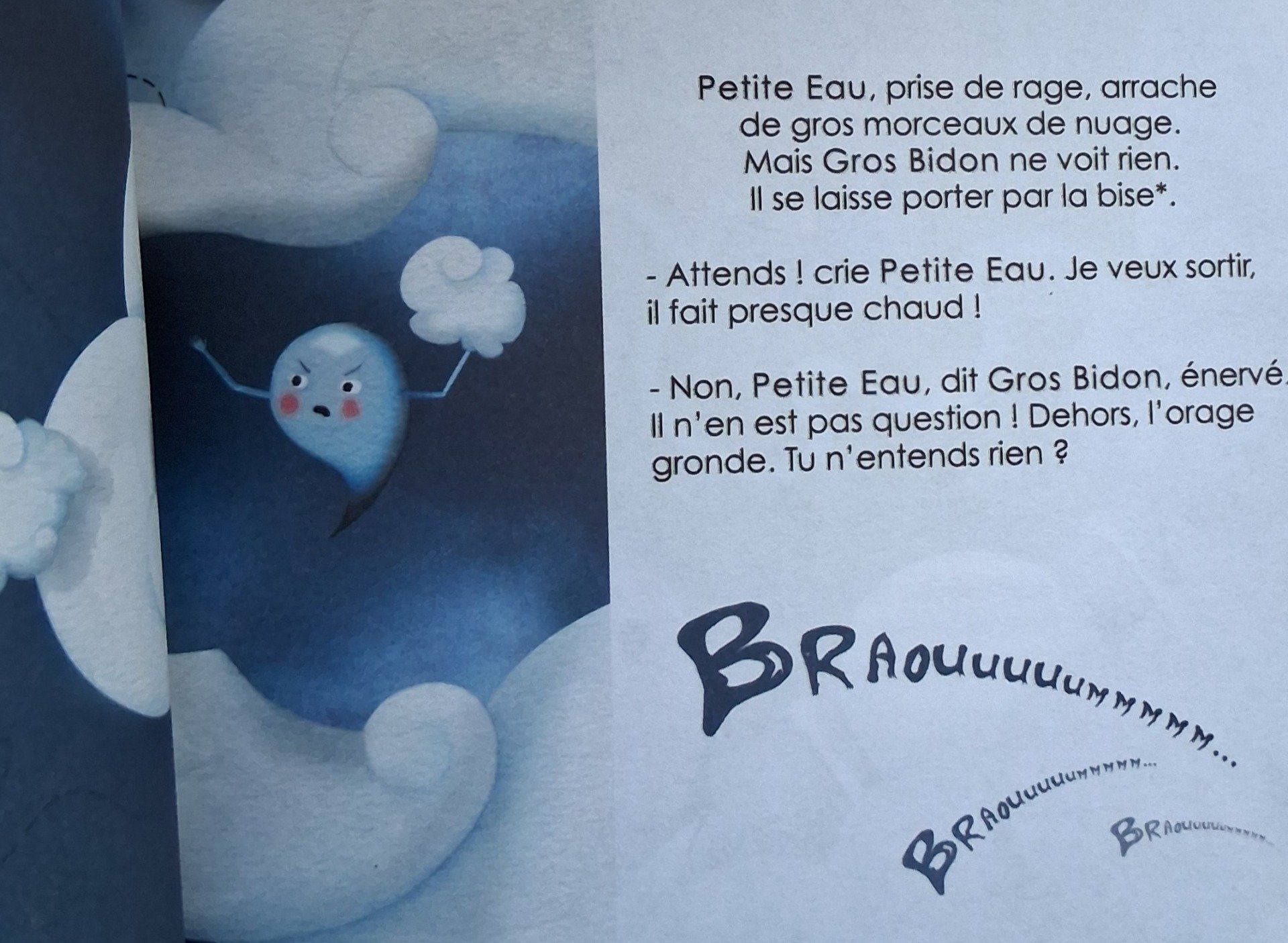 Petite Eau rêve de voyager mais Gros Bidon ne veut pas la laisser partir. Et il a raison : il fait trop chaud puis trop froid... La goutte d'eau parviendra-t-elle quand même à réaliser son rêve ?