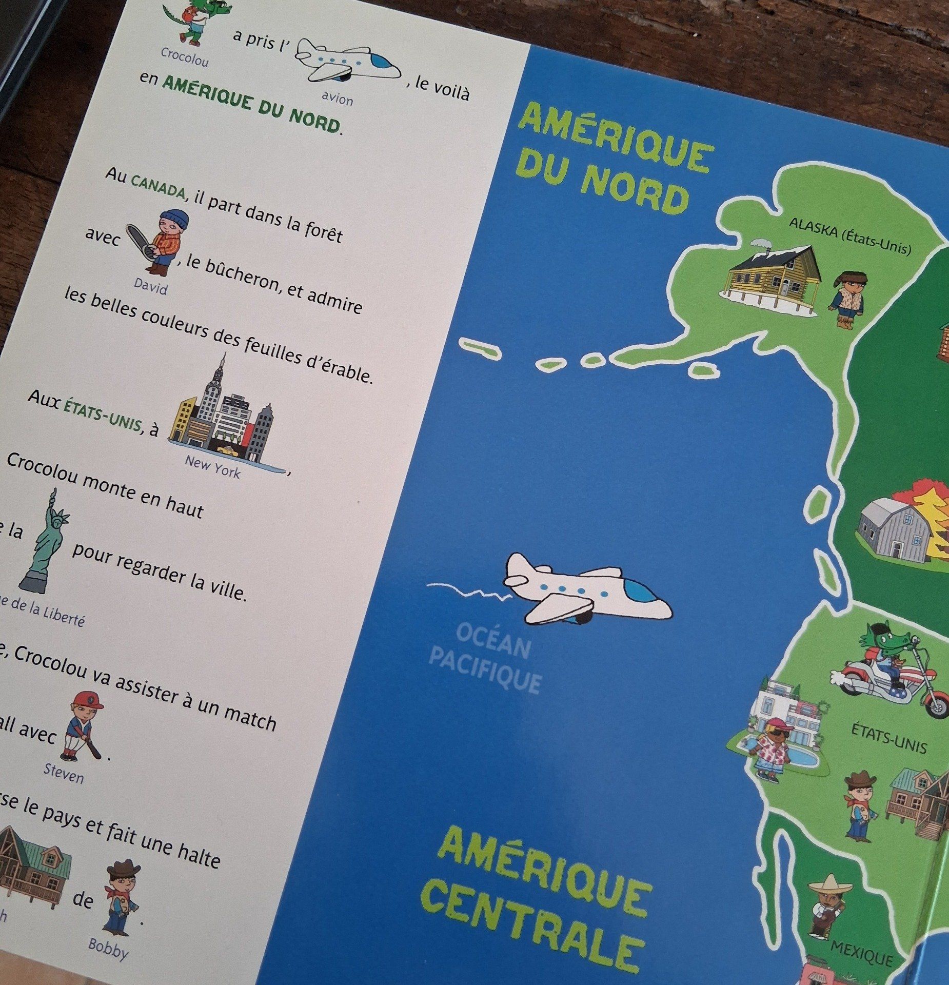 Ce voyage autour de la Terre en compagnie de Crocolou invite à découvrir les habitants, les maisons, ainsi que les animaux des cinq continents tout en se familiarisant avec le nom des pays. Riches et colorées, les quinze grandes cartes de cet atlas ont une fonction d'imagier et l'enfant s'amuse à y retrouver son héros préféré.