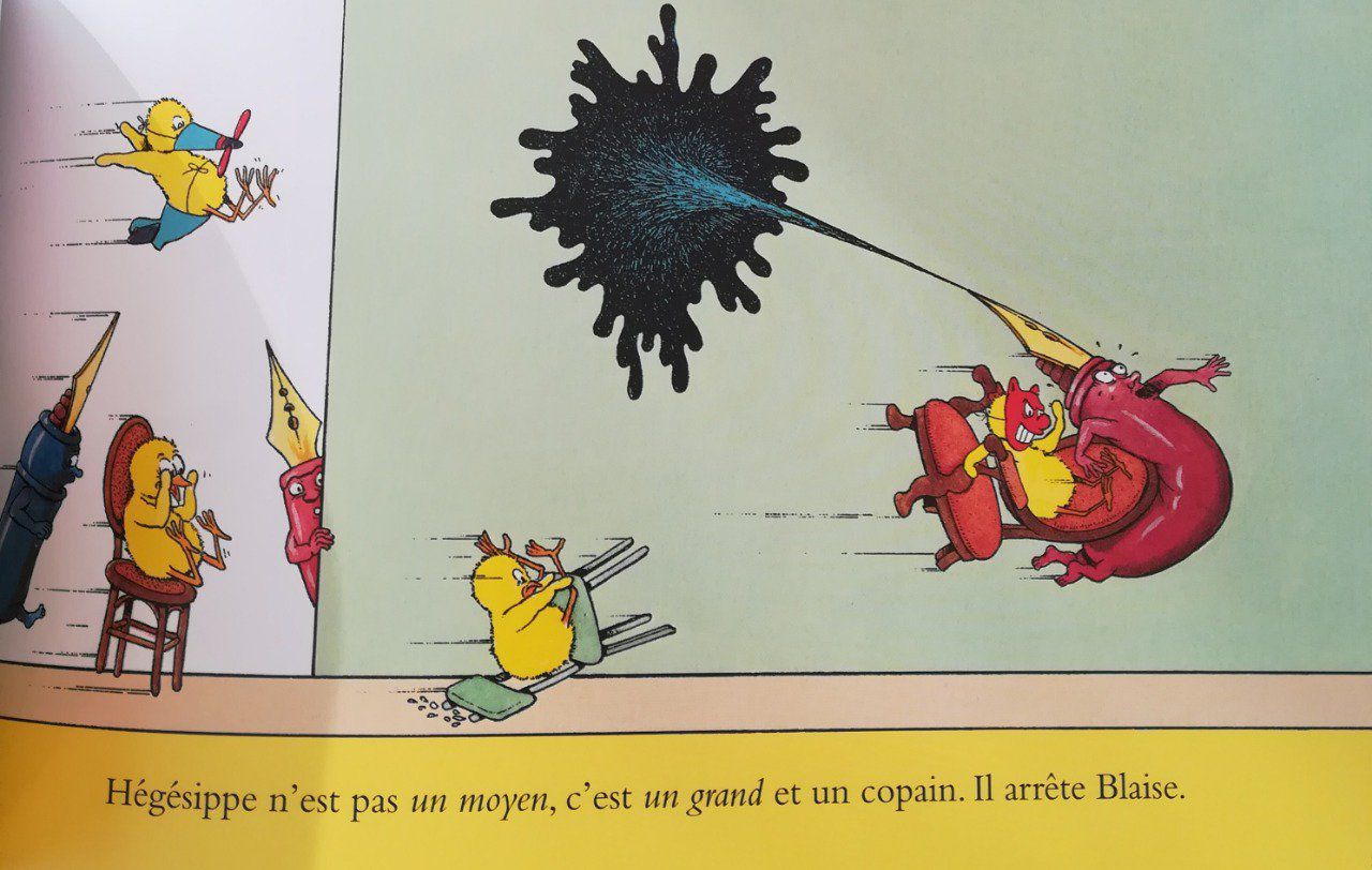 Trois histoires de poussin masqué Blaise, le poussin masqué, aime par-dessus tout inventer des jeux, faire des bêtises, déclencher des catastrophes rigolotes en bricolant, donner des frissons de peur délicieuse à tous les autres poussins, ses amis, et puis tout arranger. Dans cette compil de trois de ses ventures, voilà Blaise qui arrache le bouchon d'une tempêteuse bien mûre, puis qui organise une course de chaises et de faux Teuils, et encore qui fabrique un robinet pour jouer à la salle de bains et mettre de l'eau partout.