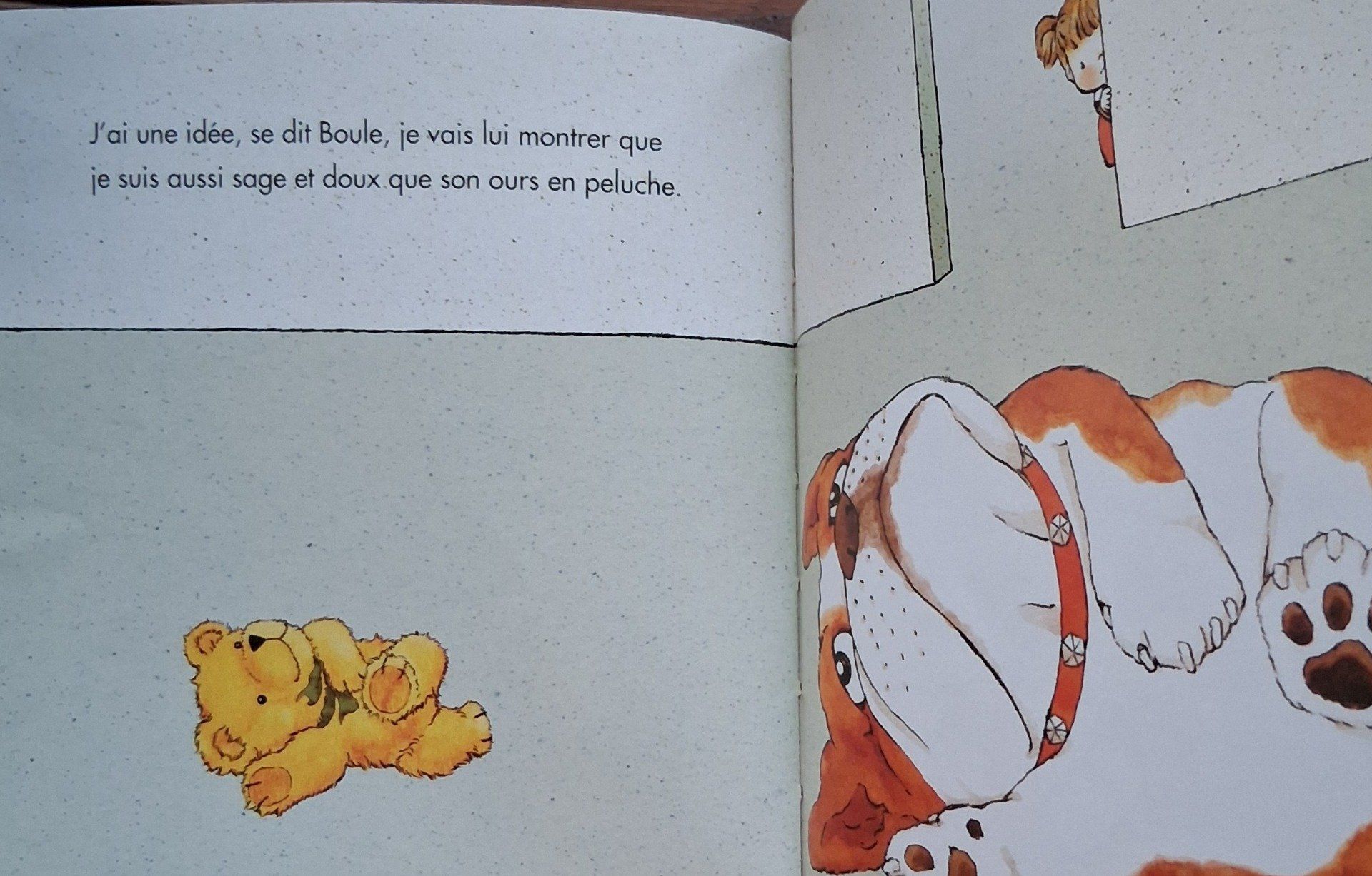 Cette petite fille me plaît beaucoup, pense Boule le chien. Comment faire pour devenir son ami ? Si je lui donnais un grand coup de langue sur la joue ? Ça ne marche pas : elle pleure. Si je chantais quand elle joue du piano ? Non plus : elle hurle. Si je faisais semblant d’être son ours en peluche ? Rien à faire : elle attrape le vrai ours et s’enfuit. Et si j’allais m’enfermer au fond de ma niche ? Tiens, voilà la petite fille qui s’approche… Le seul moyen de devenir ami avec les autres, c’est d’être soi-même !