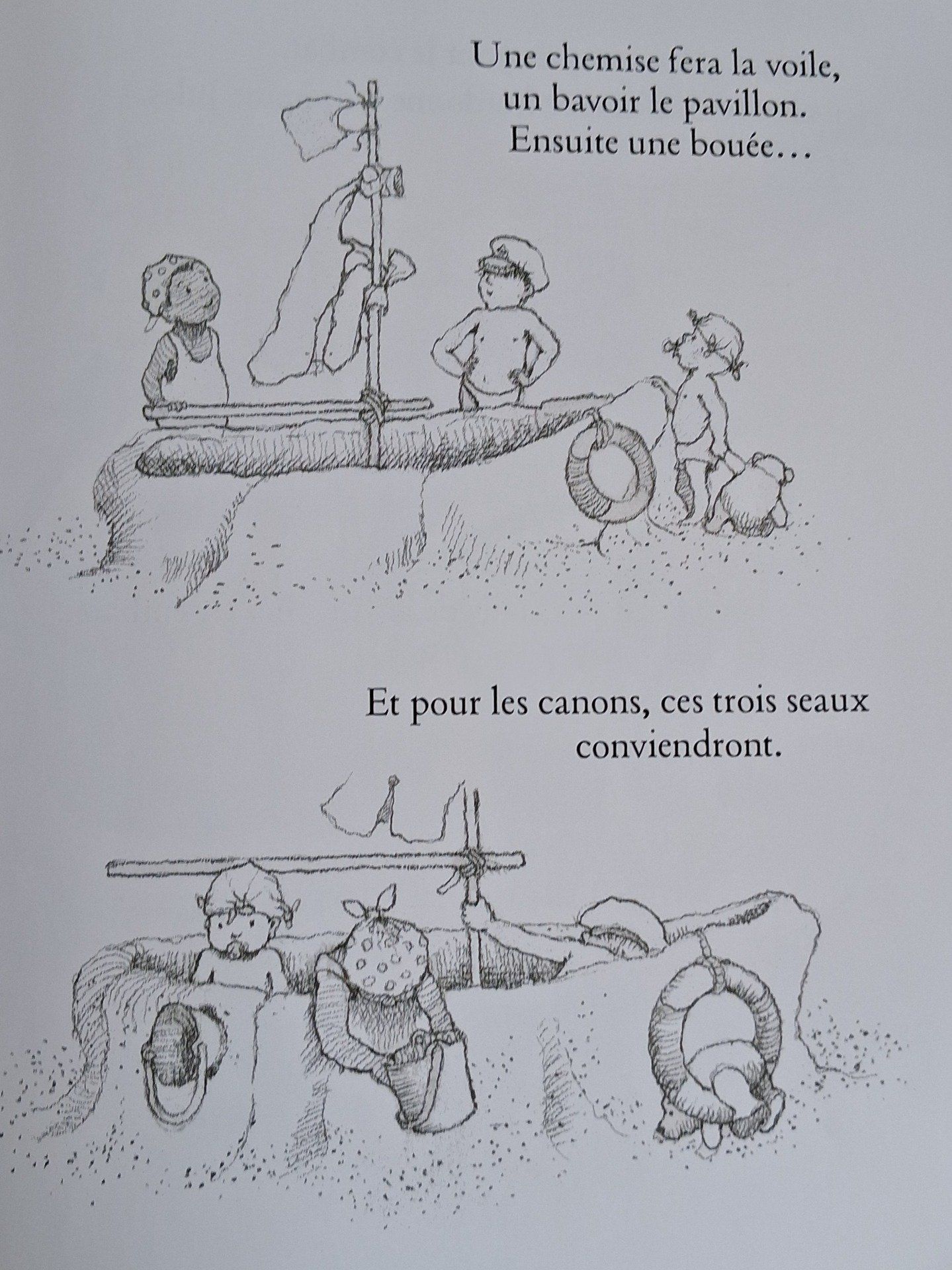 Sur la plage, trois enfants jouent aux pirates. Heu, pardon ! Trois marins courageux, Jules, Léo et Gaspard, construisent un fier galion et partent à l’aventure, prêts à braver l’ouragan et à affronter l’ennemi. Levons l’ancre ! À nous le butin !