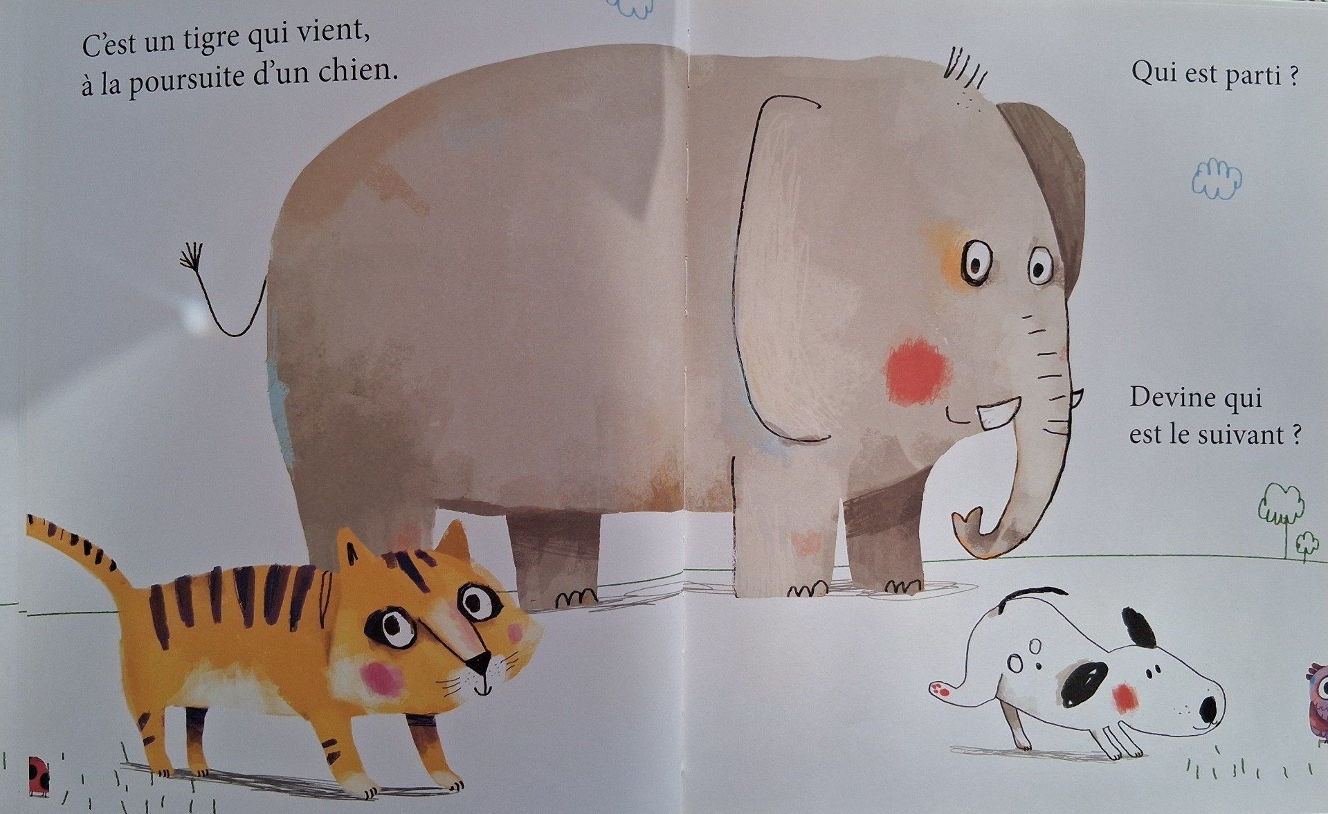 Sur chaque page de ce grand album, un animal amusant s'ajoute à la longue farandole... Peux-tu le montrer et le nommer ? Et celui qui est parti, le vois-tu ? Un livre coloré interactif à partager sans modération ! A l'âge où l'enfant devient plus attentif et capable de résoudre des problèmes, il est fier de parvenir à répondre aux questions et à trouver des solutions. Ce livre l'aidera à développer ses facultés d'observation, de mémoire et de verbalisation.