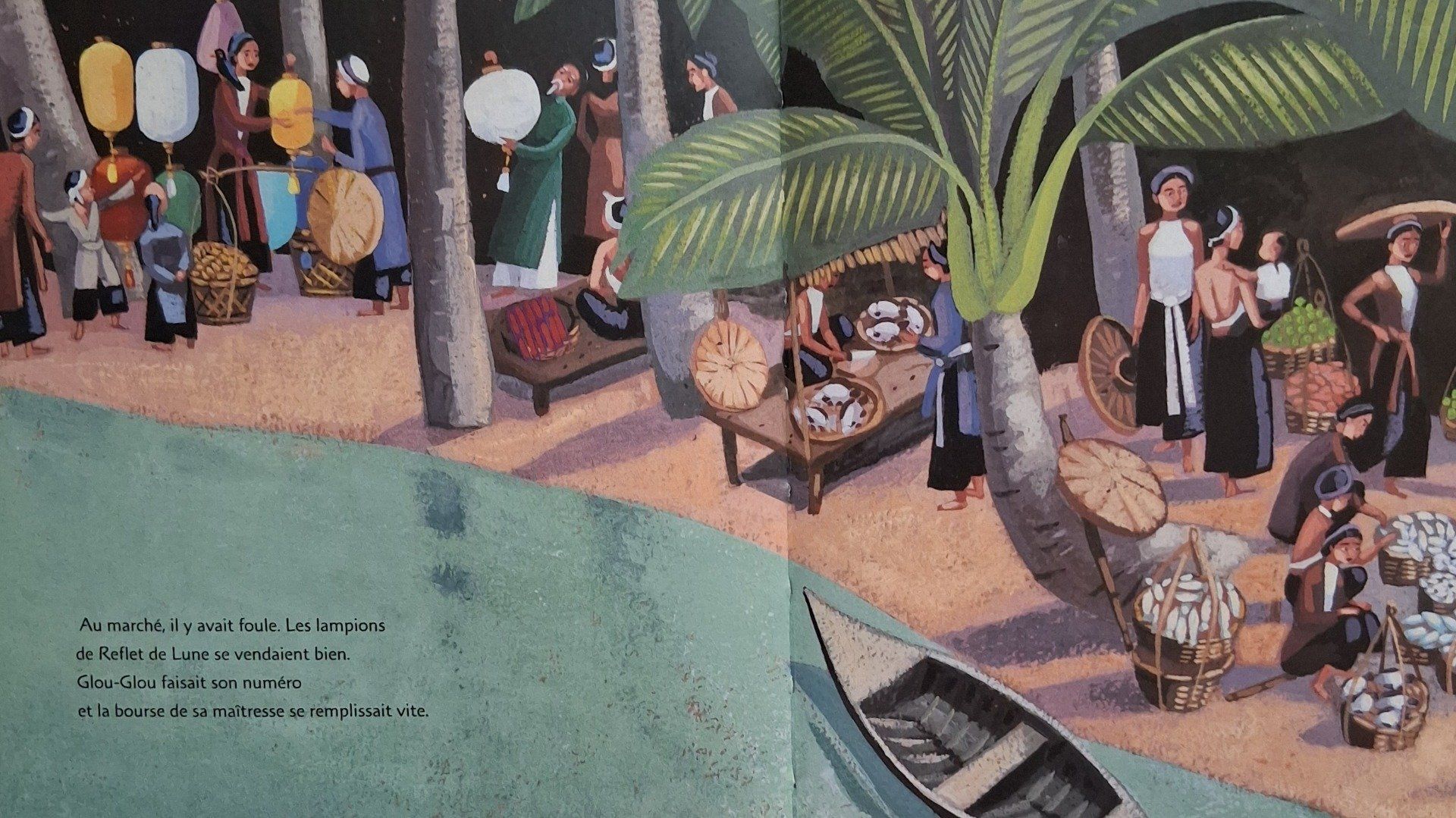 Il y avait autrefois, en pays d'Annam, la modeste échoppe d'une famille d'artisans qui confectionnaient depuis toujours des lampions multicolores. Océan, son épouse Reflet de Lune et la mère de celle-ci, Mme Prune, vivaient en bonne harmonie. Mais il y avait tout de même un nuage dans leur ciel : Reflet de Lune et Océan restaient sans enfant...