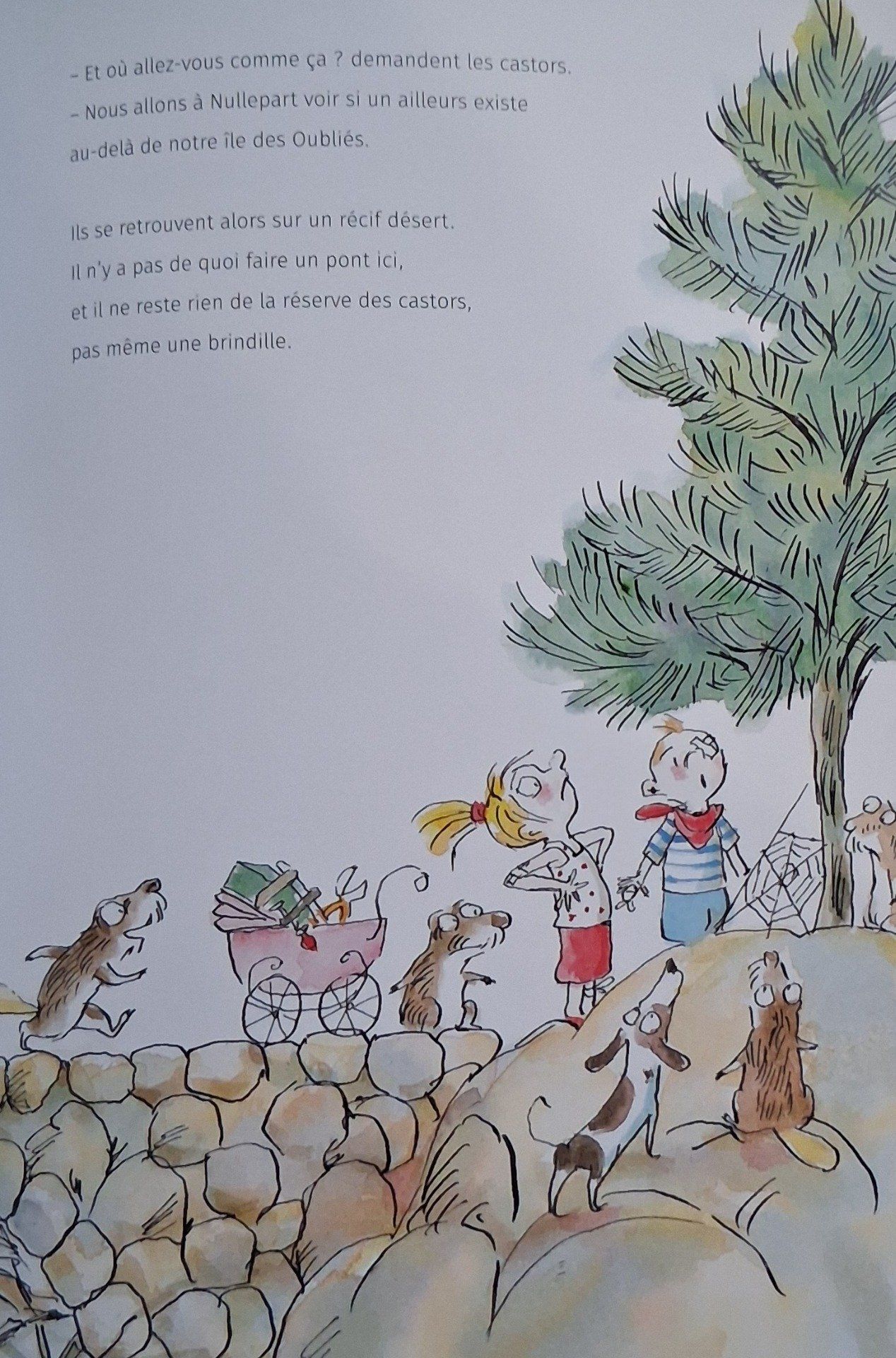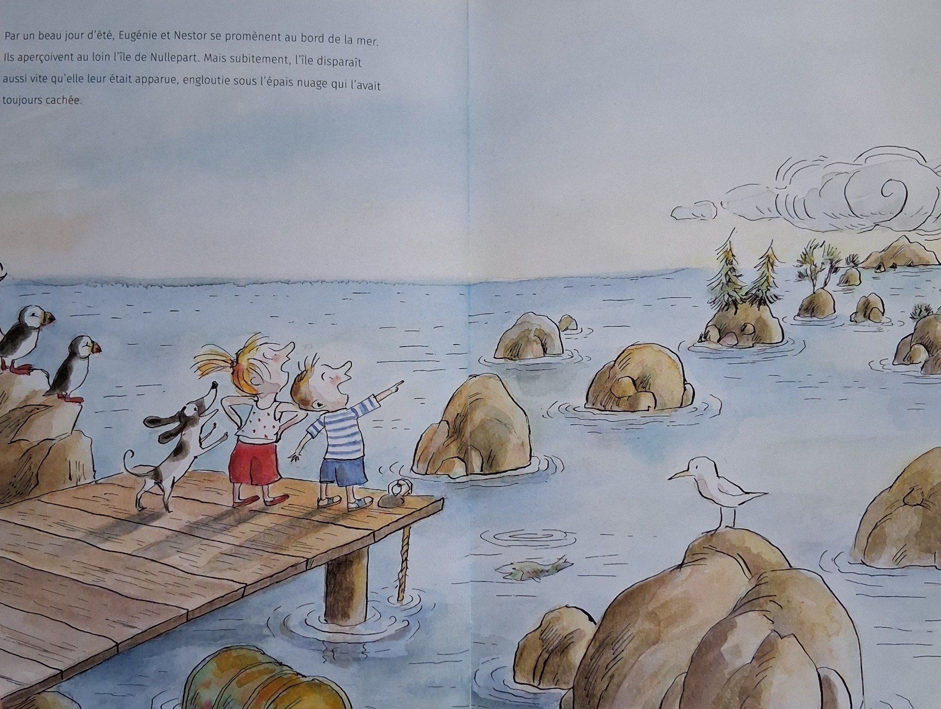 Eugénie et Nestor vivent sur une île, l'île des Oubliés. Ils rêvent de rejoindre d'île d'en face, celle que l'on aperçoit parfois, mais qui se cache aussitôt, tel un mirage. Parviendront-ils à leurs fins ?