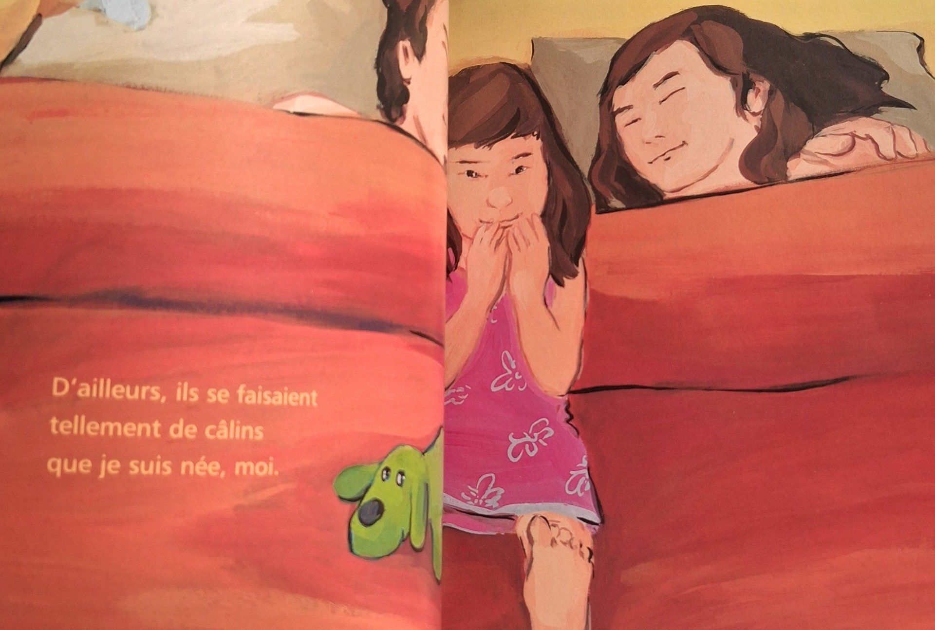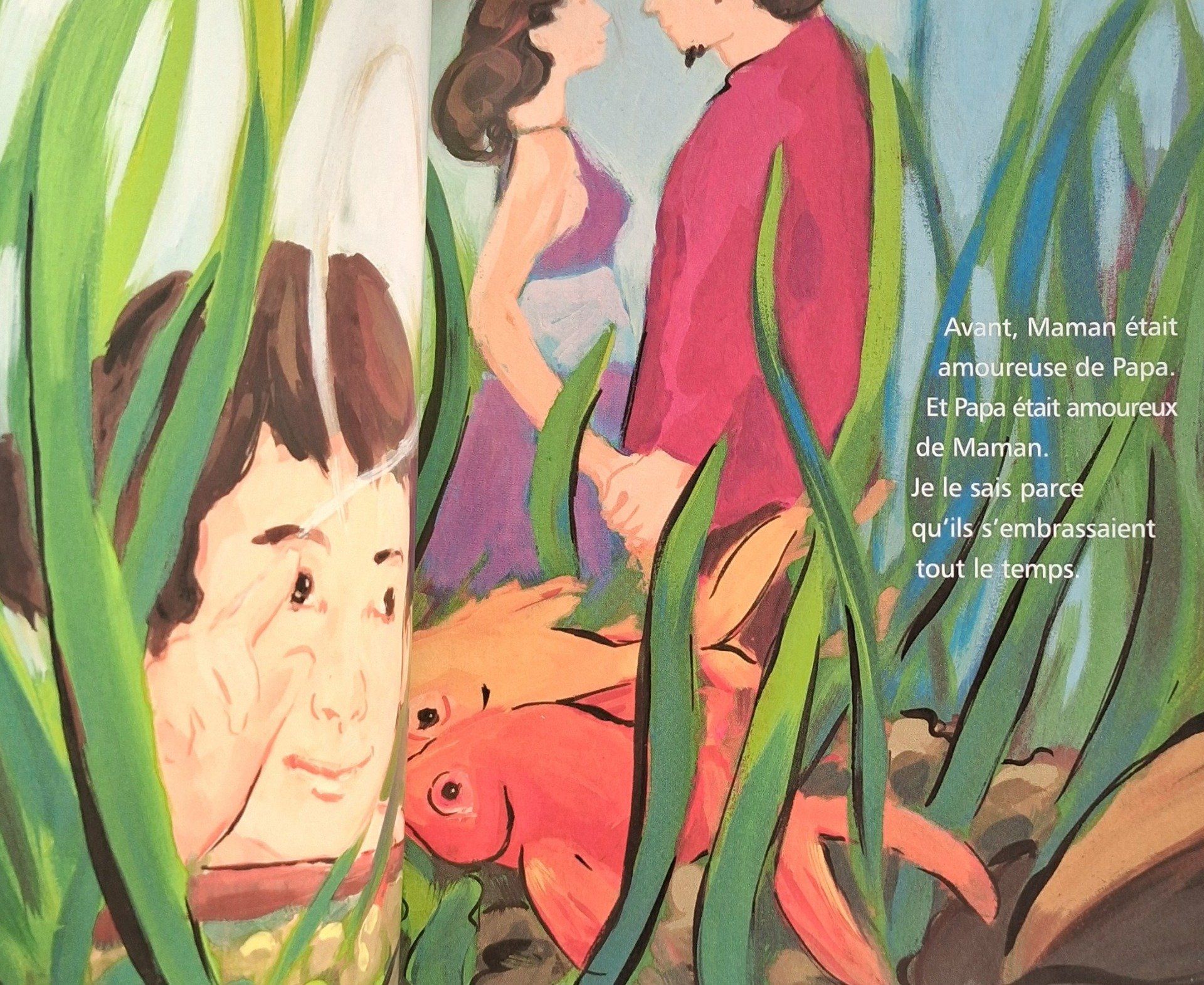 Avant, Papa et Maman s'embrassaient tout le temps. Un jour, à force de se disputer, ils ont arrêté d'être amoureux. Aujourd'hui, chacun a sa maison. Et moi j'ai deux chambres de princesses, double ration de bonbons et des bisous par millions.