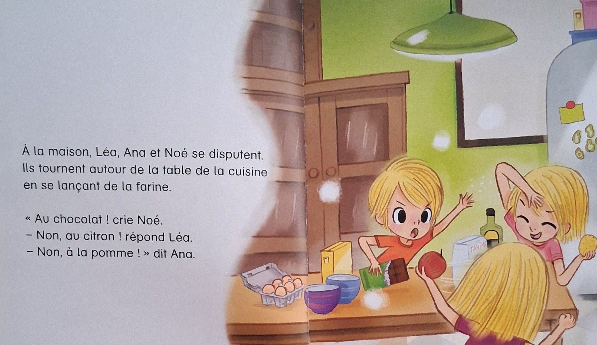 Noé, Ana et Léa fêtent leurs anniversaires. Ils ont fait un gâteau chacun. Dans la classe, les gâteaux sentent bon. "C'est quand l'heure des gâteaux" ? demande Téo
