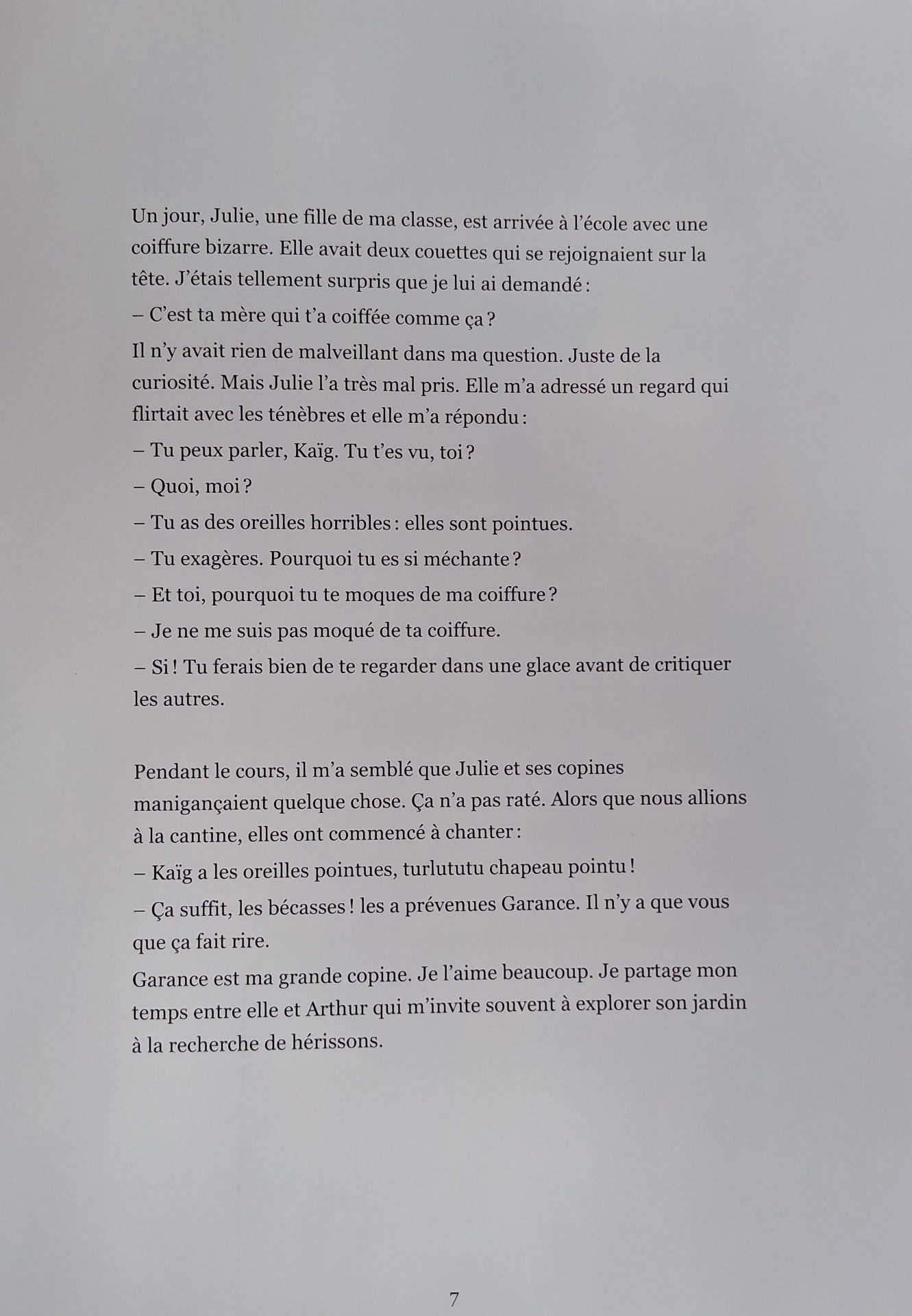 L'arrivée d'une petite souris dans la classe fait comprendre à Kaïg qu'il vient du peuple des Korrigans et possède le pouvoir de parler aux animaux. Magique ! Kaïg a une petite différence avec les autres élèves : ses oreilles sont pointues. Certains de ses camarades en profitent pour se moquer de lui. Un jour, la maîtresse apporte une souris blanche dans une cage ; ce sera la nouvelle mascotte de la classe.
