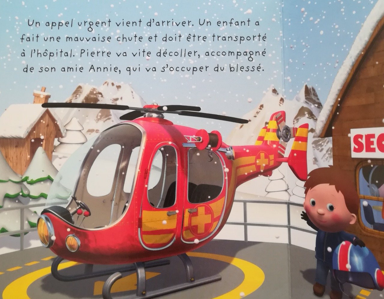 Avec son hélicoptère, Pierre va secourir un skieur en montagne. Quelle aventure !