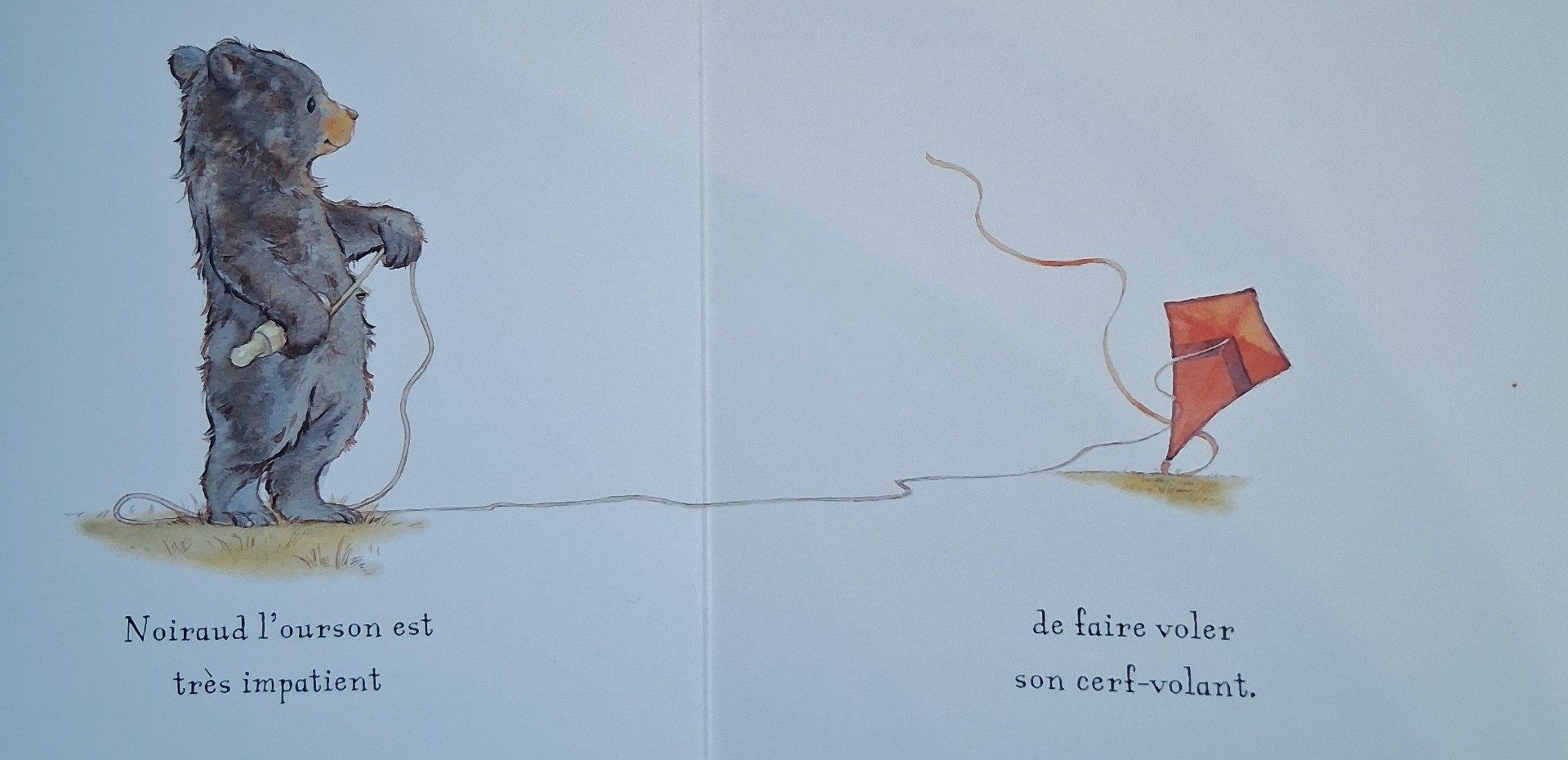 Découvrez comment les deux gentils oursons Noiraud et Flocon font voler leur cerf-volant.