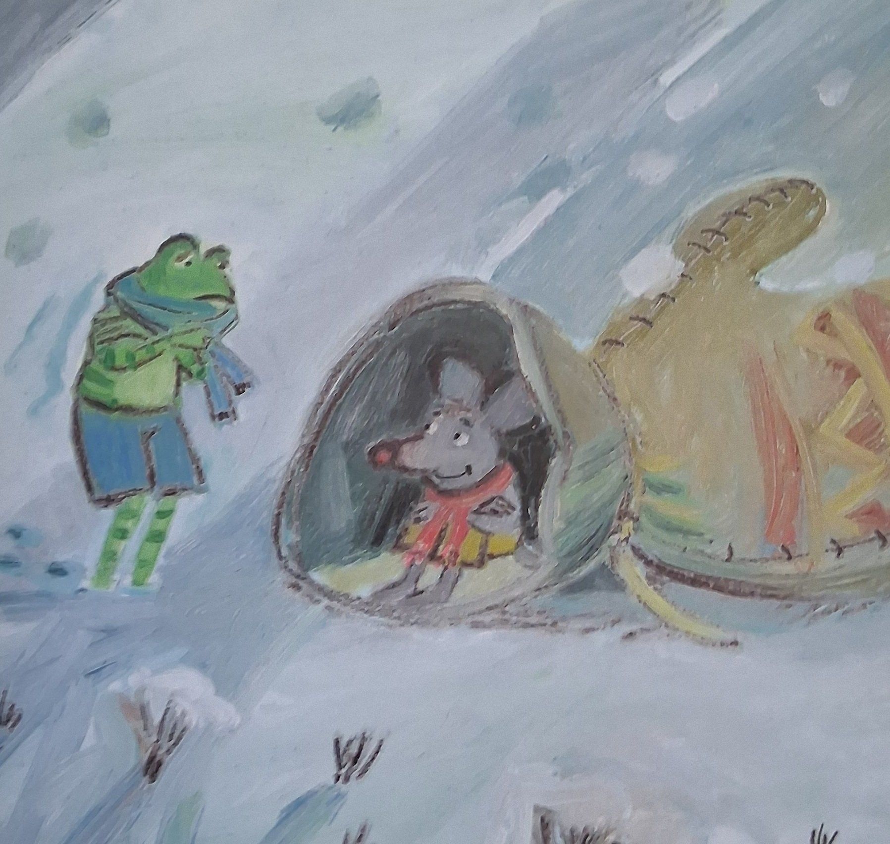 Celle-ci deviendra alors une maison confortable et douce pour une souris, une grenouille, un lapin, un renard, un loup et un ours.