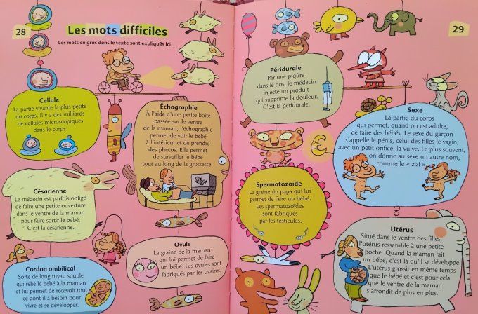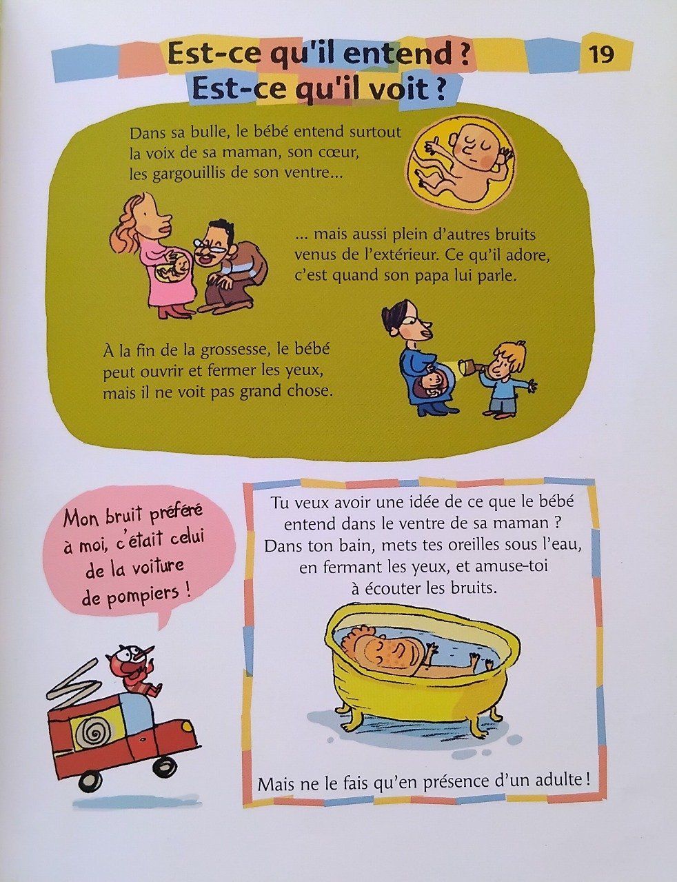Un documentaire illustré moitié histoire moitié doc. pour poser toutes les questions sur la naissance : par où il sort, le bébé, est ce qu'il nous entend, que fait le bébé dans le ventre de la maman...