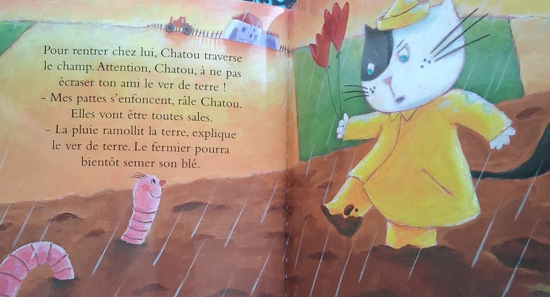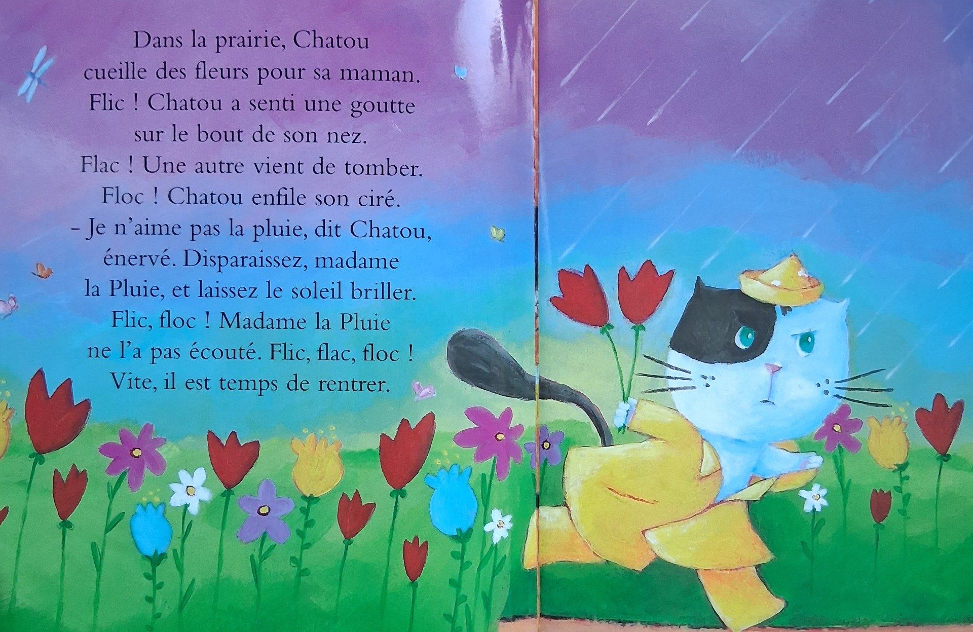 Chatou, le petit chat n'aime pas du tout la pluie. Dès que quelques gouttes lui tombent sur le nez, il s'énerve et se met à ronchonner...
