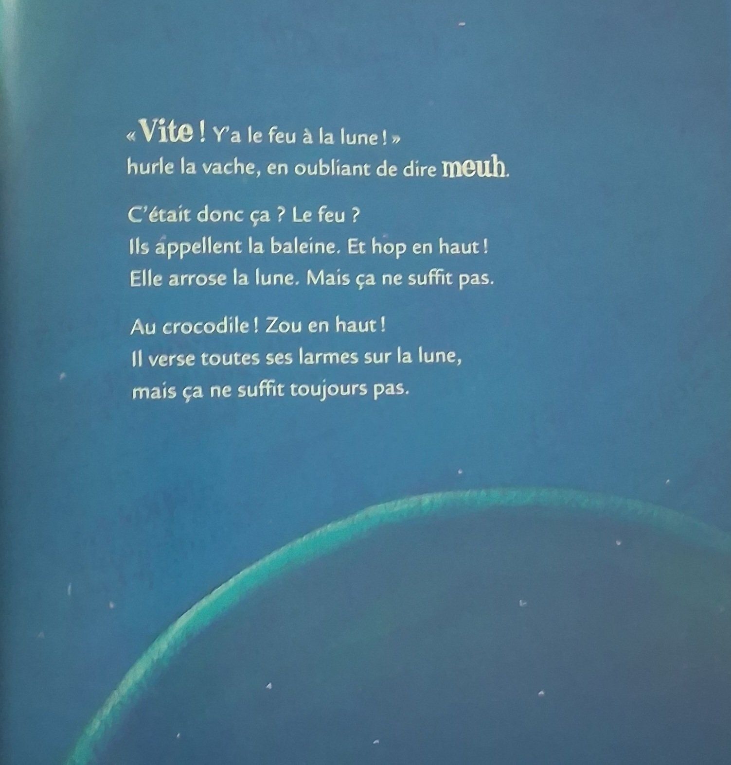 Mamie Poule a toujours plein d'histoires à dormir debout à raconter le soir à ses petits-enfants. Et ce soir, avant d'aller se coucher, ce sera l'histoire de la vache qui voulait éteindre la lune… à sa façon ! Cette nuit-là, la lune brille si fort que personne ne peut fermer l'œil…