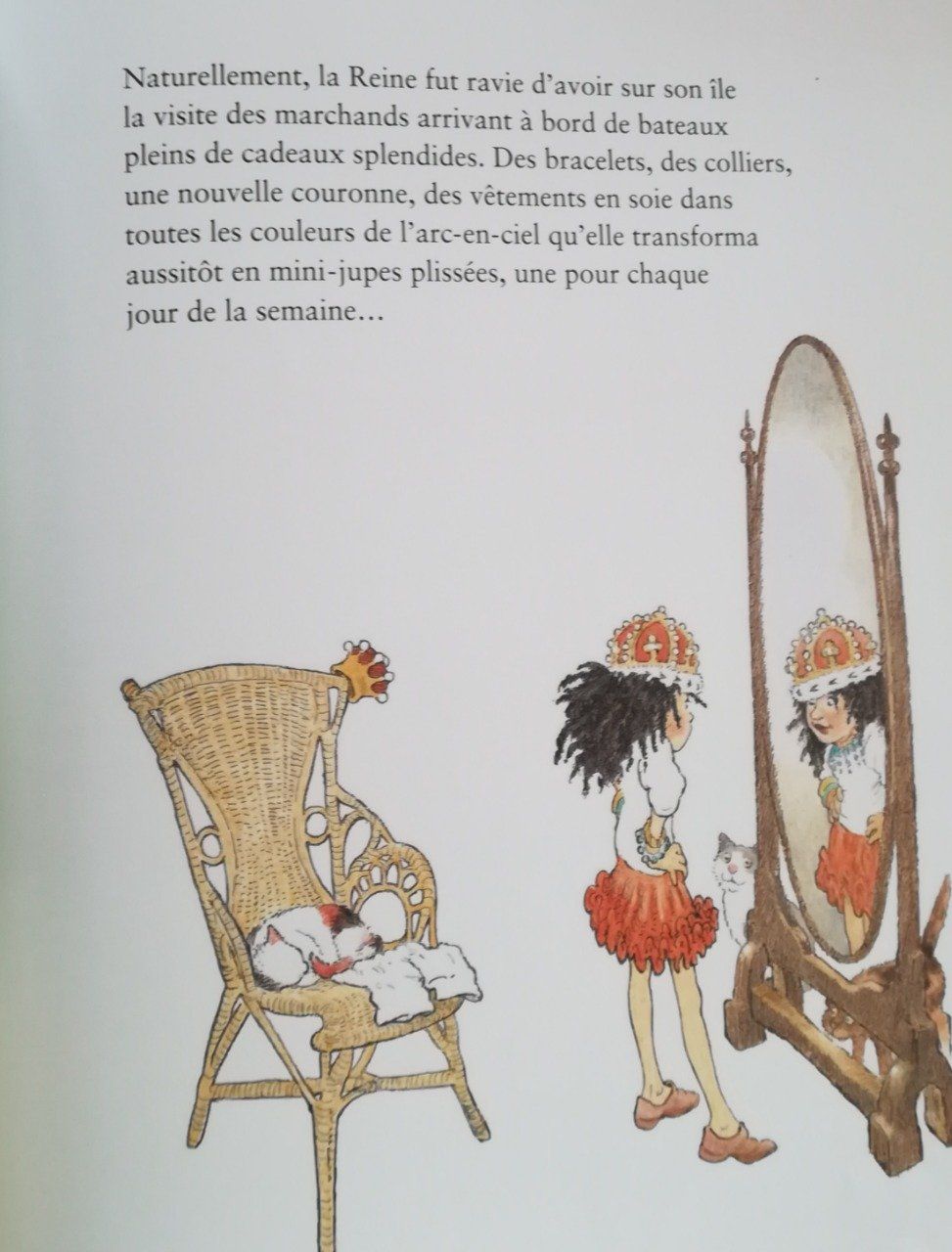 Le Chapitaine adorait les chats. Il possédait plus de chats à bord de son bateau qu'il n'avait de marins dans son équipage. Les autres marchands se moquaient de lui. Le Chapitaine partait en mer pour découvrir les merveilleux endroits qu'il était toujours impatient d'explorer. Un jour, il aborda une petite île retirée. La jeune reine se fit une joie de l'accueillir.