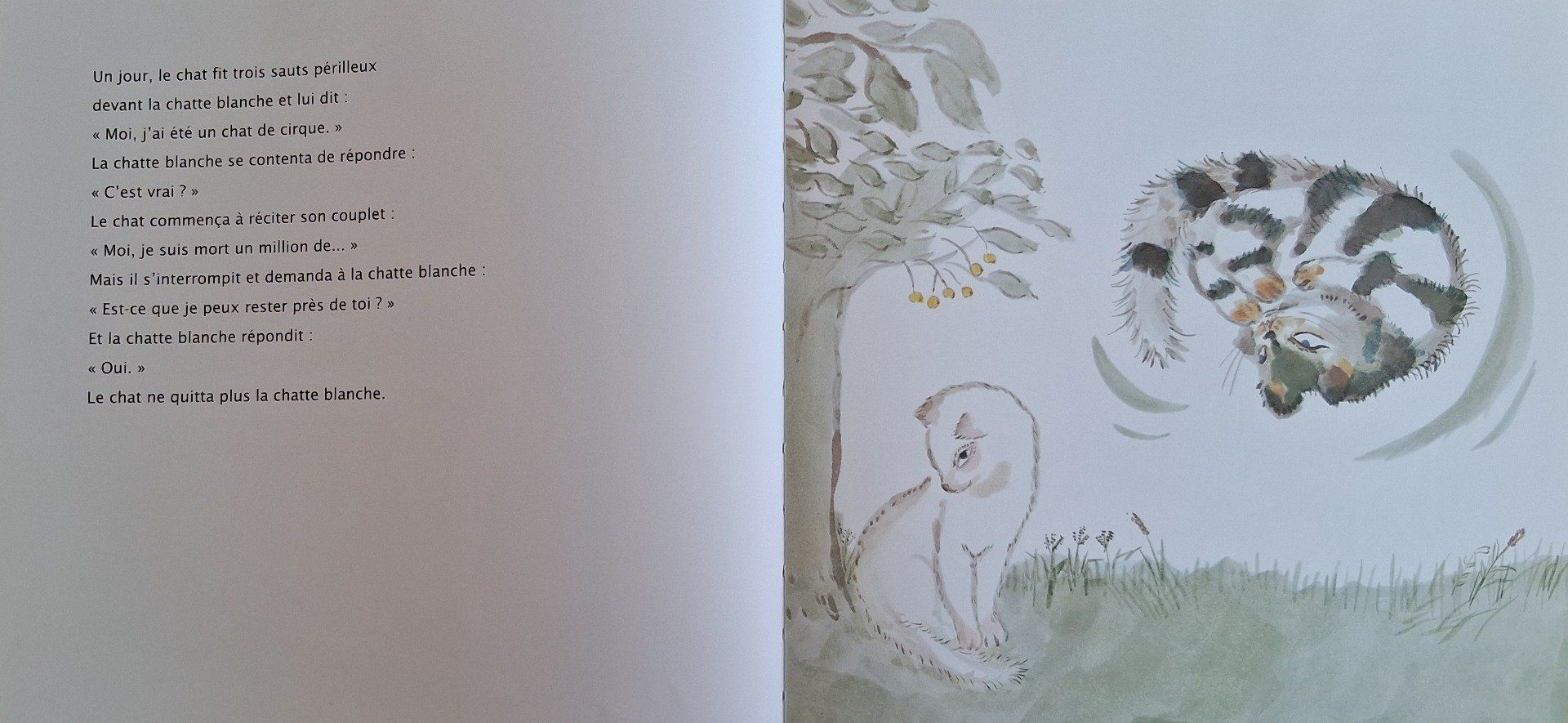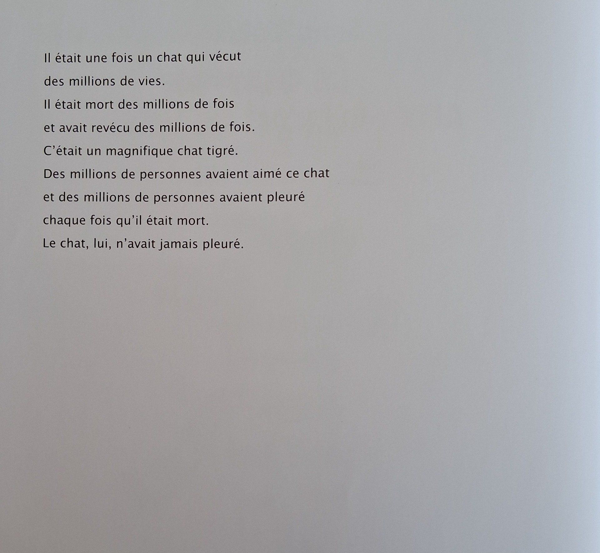 Ce conte d'inspiration bouddhiste raconte les millions de vies du chat japonais, tour à tour chat d'un marin, d'un magicien de cirque, d'un voleur, d'une grand-mère solitaire, d'une petite fille, avant de devenir son propre maître et de se marier avec une belle chatte blanche.