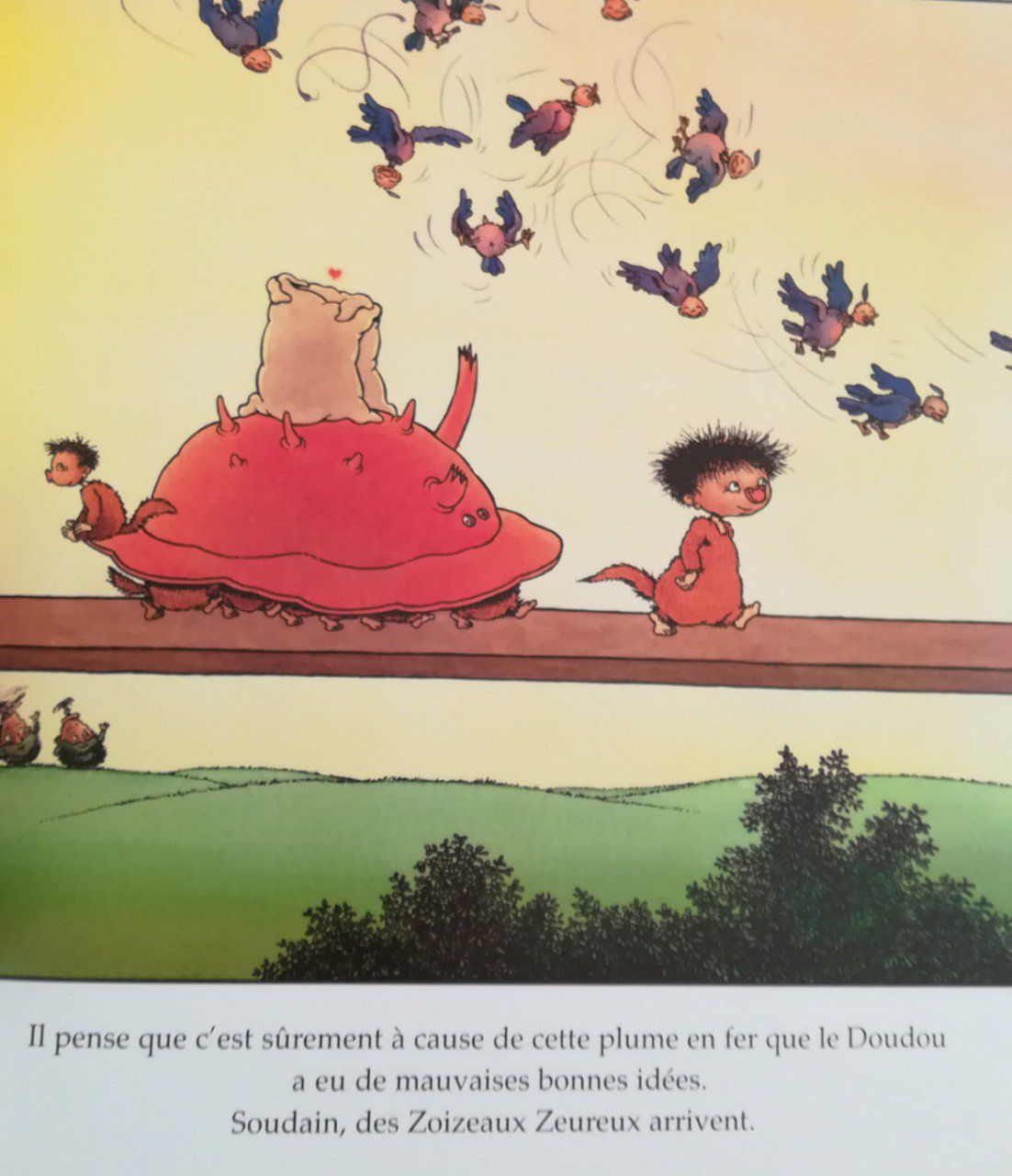 Encore une histoire aux allures de conte de Claude Ponti qui comme souvent va les mener à un voyage initiatique. Pourquoi le doudou pousse t-il l'enfant à faire des choses si cruelles ? Plusieurs niveaux de lecture, philosophiques et psychanalytiques, très beau.