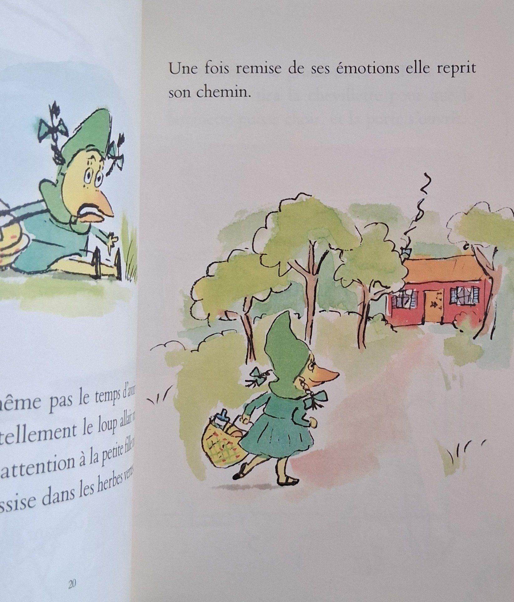 Le Petit Chaperon Vert est une fille très sympathique, et courageuse. Elle n'a qu'une ennemie, cette sale menteuse de Petit Chaperon Rouge. La voici en chemin, elle traverse la forêt pour aller voir sa grand-mère, lui porter à manger et des médicaments. Tout se passe admirablement bien sauf que la grand-mère a un gros rhume. Oui, tout irait pour le mieux, même avec le loup qui rôde, s'il n'y avait pas cette andouille de vantarde de Chaperon Rouge. Un livre pour les enfants qui aiment déjà lire tout seuls.