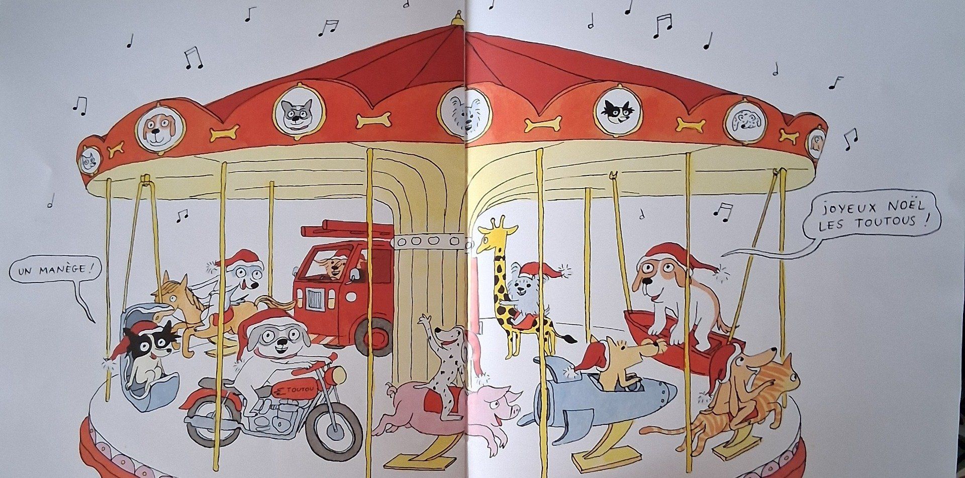 C’est la veille de Noël, les toutous attendent leurs cadeaux avec impatience. Zaza a demandé un camion de pompier, Omar une balançoire, Micha voudrait un gros cadeau. Pourtant le Père noël n’a déposé qu’un seul cadeau pour tout le monde ! Un seul cadeau ? Mais quelle surprise !