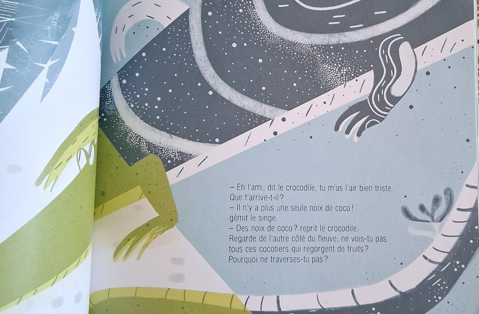 Dans la savane, Un singe a mangé toutes les noix de coco de son arbre. Il voudrait traverser la rivière à la recherche d'autres fruits mais ne sait pas nager. Un crocodile lui propose son aide mais il a un tout autre plan !