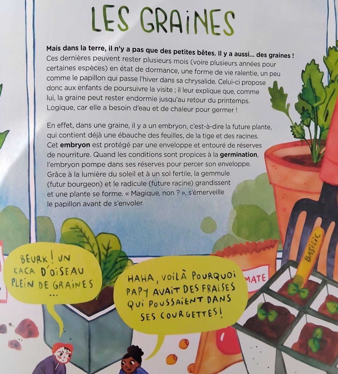 Ils seront ainsi aux premières loges pour apprendre tous les secrets de la vie et de la biodiversité de cet écosystème si proche de nous en discutant avec le ver de terre, le papillon, l'abeille, le merle, l'escargot, la coccinelle - et même l'araignée. Sans oublier le carabe doré, l'ami du jardinier, et la musaraigne. Au passage, ce sera autant d'idées reçues sur les nuisibles ou autres qui tomberont !