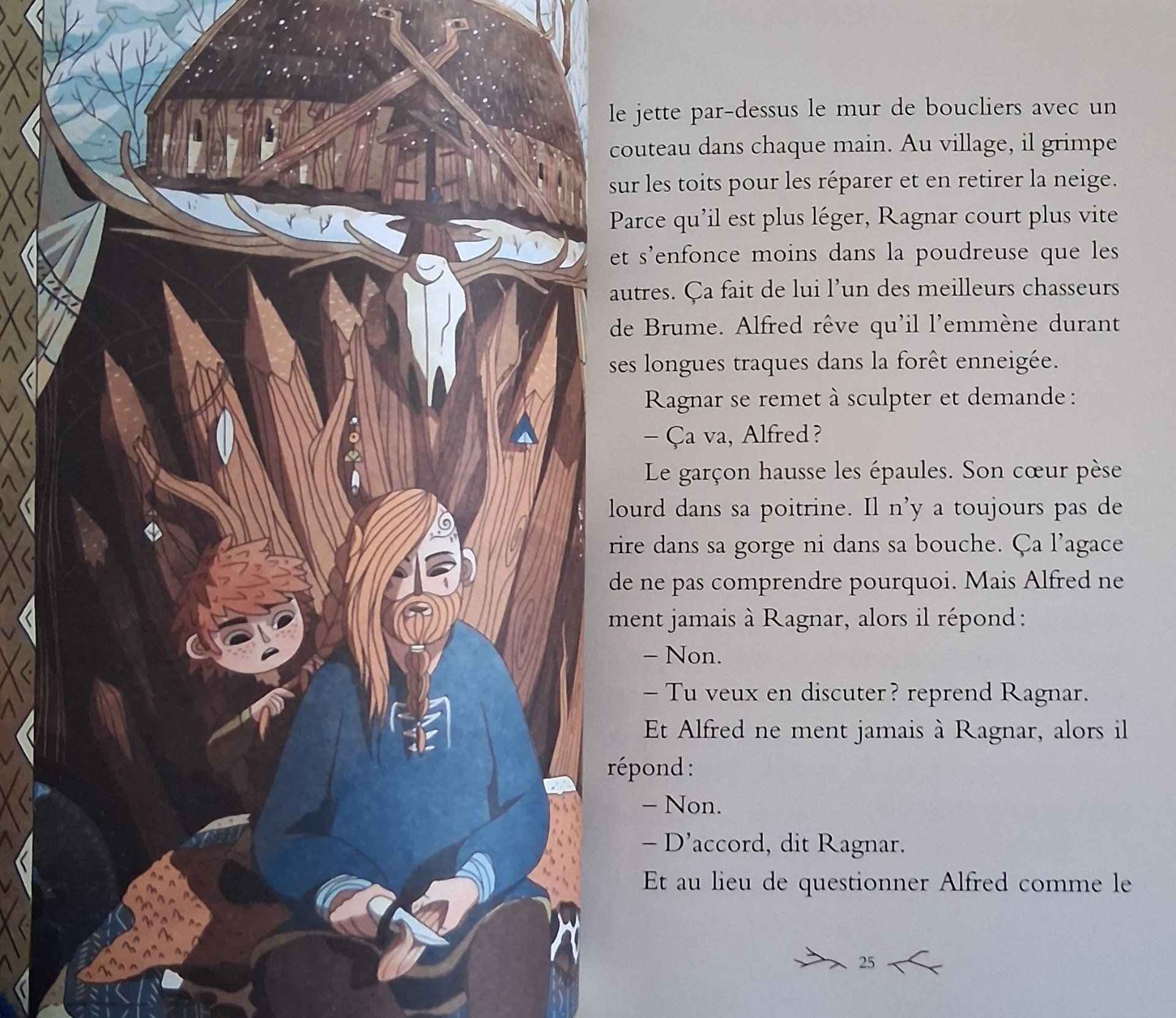 Il y a très longtemps, il y avait deux hivers : la Grande, avec ses froids polaires et ses blizzards, et la Petite, avec ses glissades joyeuses et ses batailles de boules de neige. Mais depuis que la Petite a disparu, tout est détraqué au village de Brume ! Les adultes sont inquiets, plus personne ne rit aux bonnes farces d’Alfred et, surtout, les trolls passent leur temps à voler des objets, qu’ils emportent à tout jamais dans la taïga. Lorsque l’oncle d’Alfred se porte volontaire pour rapporter les objets volés et qu’il disparait sous ses yeux, avalé par la tempête, c’en est trop : il faut partir à sa recherche, coûte que coûte, braver les dangers de la forêt boréale, et affronter la Grande Hiver…