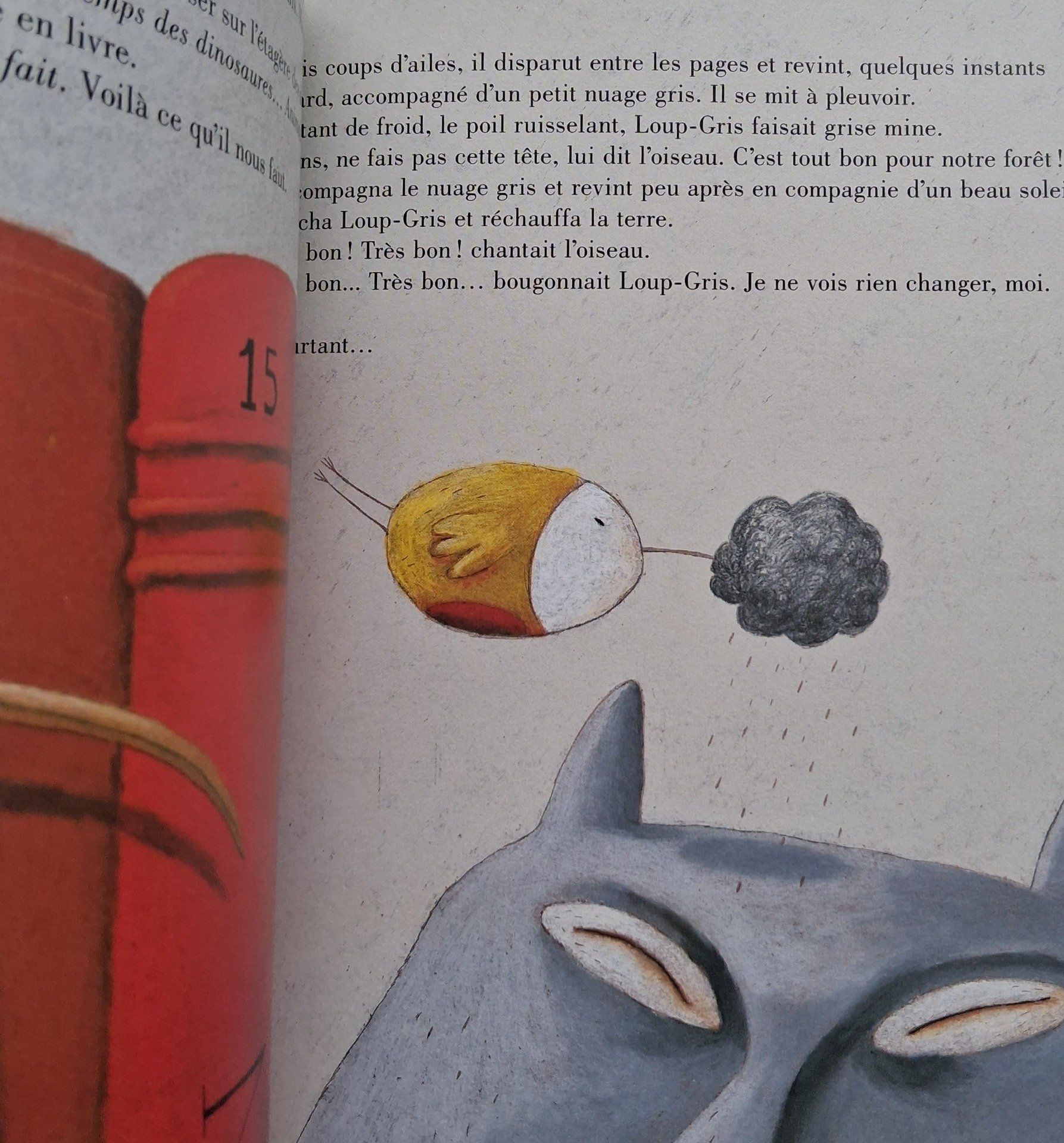 Il était une fois, sur la couverture d'un album de la bibliothèque, un grand loup au poil gris et aux longues dents pointues. Il s'appelait Loup-Gris de la forêt noire et il s'ennuyait ferme clans son histoire... Pas le moindre Petit Chaperon rouge à se mettre sous la dent, pas de cochon mignon à l'horizon, pas de petit biquet à dévorer : vous parlez d'une vie de loup ! Heureusement, un compagnon de fortune va mettre Loup-Gris sur la voie d'une histoire beaucoup plus... comment dire... alléchante !