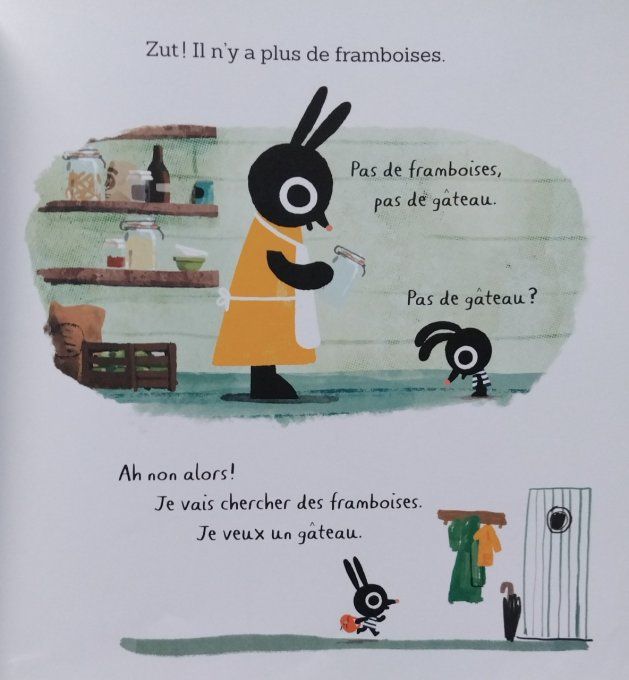 Mini-Lapin veut faire un gâteau aux framboises, mais il n'a plus de framboises. Il part donc à la recherche du fruit manquant. Heureusement, Mini-Lapin est courageux, il n'a pas peur de... se perdre ? Non, même pas peur.
