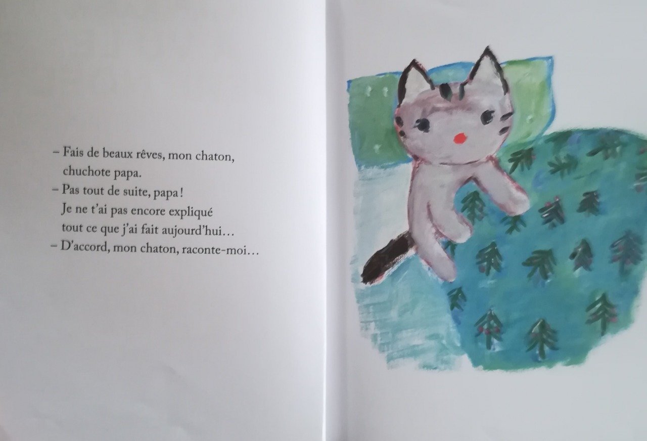 Fais de beaux rêves, mon chaton, chuchote papa. Pas tout de suite, papa ! Je ne t'ai pas encore expliqué tout ce que j'ai fait aujourd'hui... Aujourd'hui, j'ai vu le père Noël !