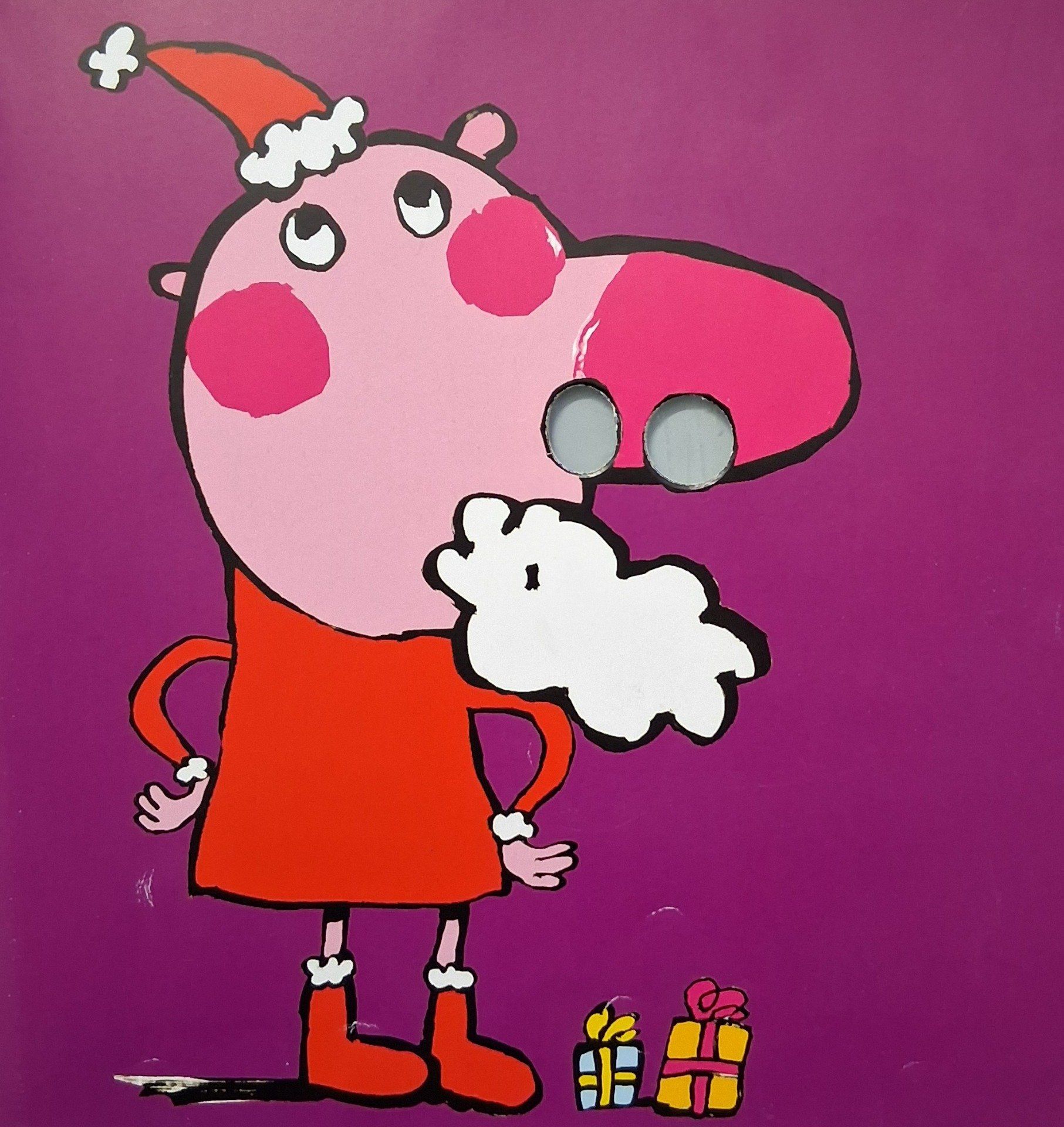 À chaque page, c'est vrai, c'est très tentant... mais ne mets pas tes doigts dans le nez de la chèvre, ni dans celui du cochon ! Encore moins dans le nez du Père Noël ! Et surtout pas, malheureux, dans le nez du loup !