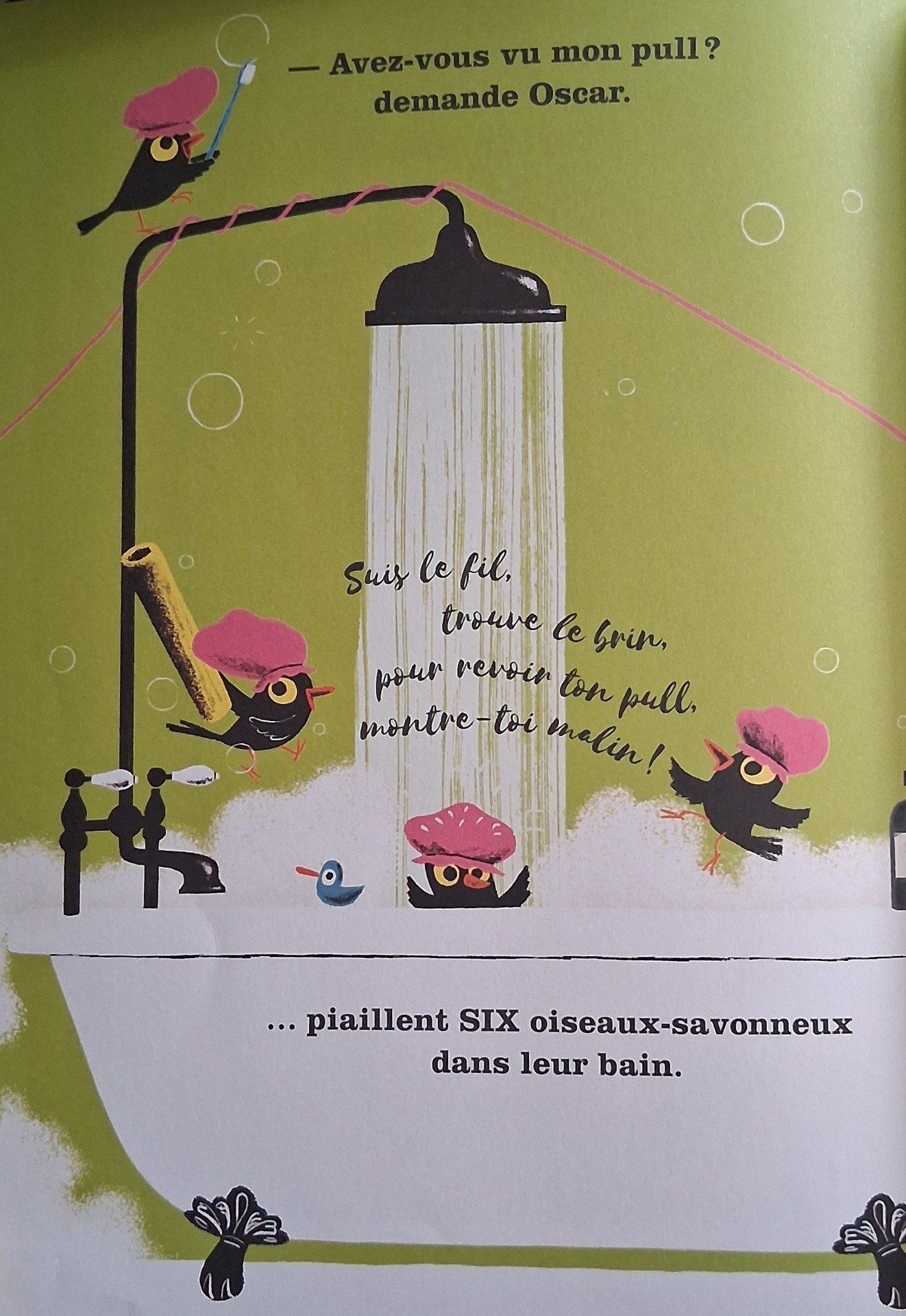 Ce matin, Oscar ne trouve pas son pull rose. C'est son pull préféré, même s'il est maintenant un peu trop serré, même s'il est tout uni, sans rien dessiné dessus... En suivant un mystérieux fil rose, Oscar traverse la maison pleine de vie et demande de l'aide à tous les animaux dingos qui vivent dans chaque pièce : mais où a bien pu passer le pull d'Oscar ? Une quête pleine d'humour et de tendresse, des flaps à soulever et des découpes pour des surprises à chaque page !