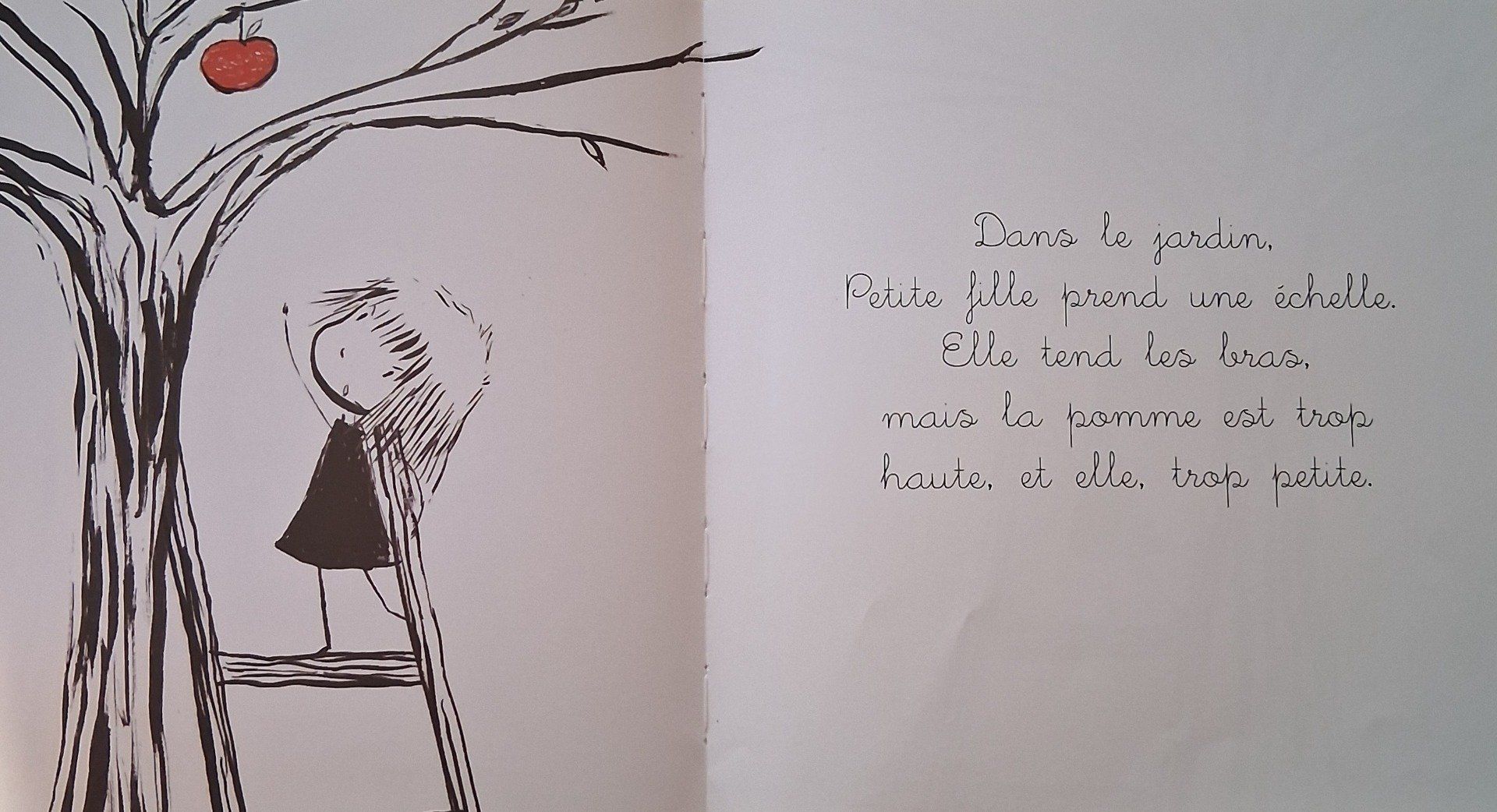 Petite fille aperçoit dans son jardin une jolie pomme rouge qui lui fait bien envie... Mais petite fille est bien trop petite pour l'atteindre ! Qui pourra l'aider ? Une petite histoire où l'on apprend entre autres l'entraide et le partage.