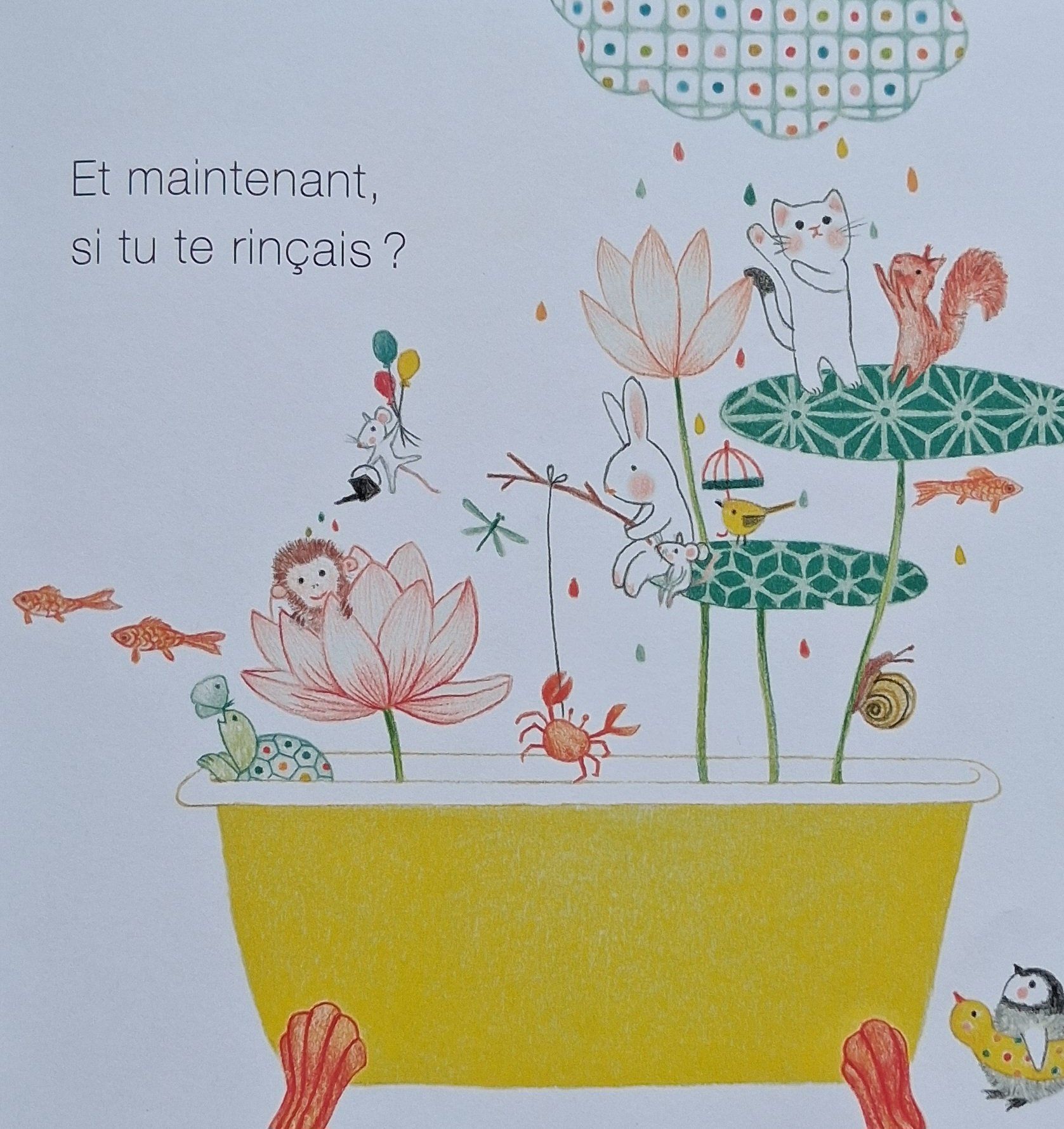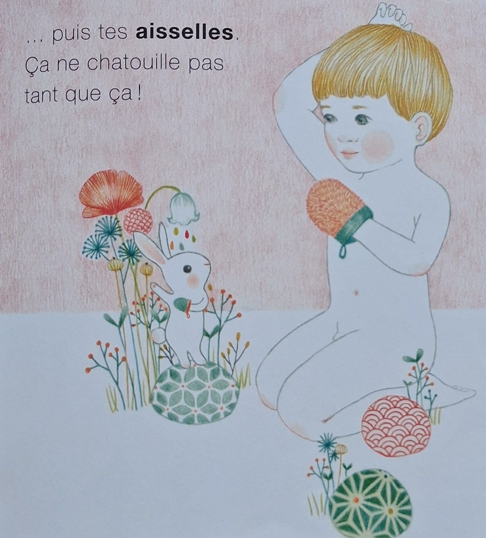 un imagier pour accompagner l'heure du bain et apprendre à nommer toutes les parties du corps, sans fausse pudeur. À son habitude, Seng Soun Ratanavanh compose des illustrations délicates, peuplées d'adorables enfants et de tendres personnages facétieux qui montrent comment exécuter les gestes de la toilette.