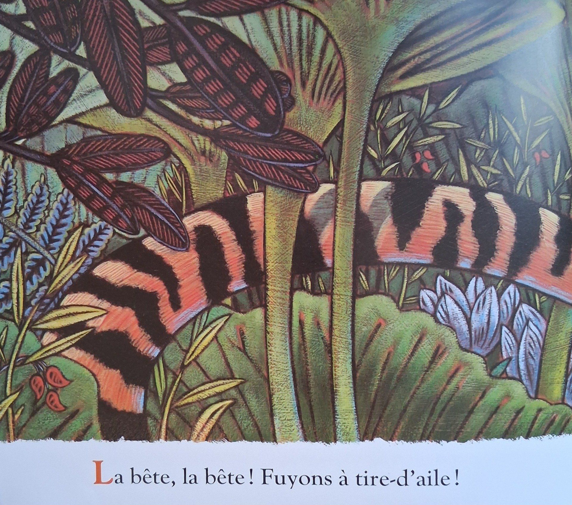 Les animaux crient à la bête. Le tigre s'interroge: "Est-il la bête"? Le serpent n'a-t-il pas lui-même les yeux verts et luisants ? L'abeille n'a-t-elle pas également des rayures jaunes et noires ?