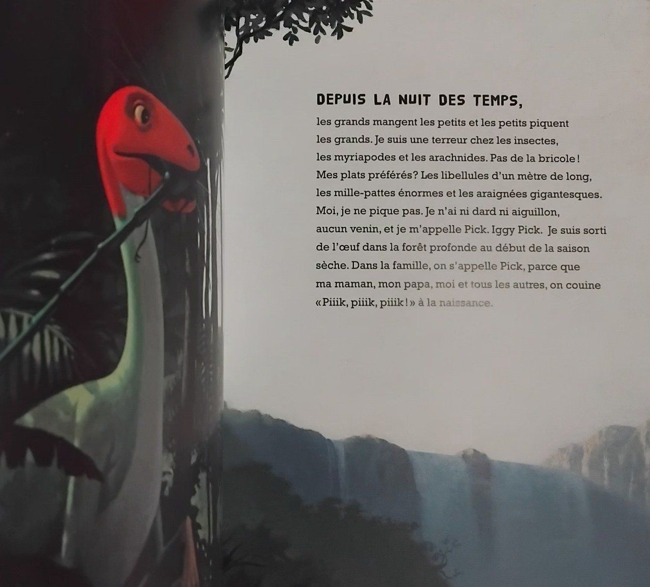 Quand la forêt où vivent la famille et les amis de Igui brûle, ils doivent la quitter et découvrent alors d'autres dinosaures immenses, dangereux et carnivores. Igui, le petit dryosaure (lézard des arbres), grâce à son humour, parviendra à se lier d'amitié avec le grand Rex, le tyrannosaure, et saura prouver l'utilité des petits auprès des grands.L'album aborde des thèmes forts qui invitent au dialogue : les rapports entre grands et petits, garçons et filles, violence et protection, brutalité et humour, exclusion et entraide... À partir de 5 ans