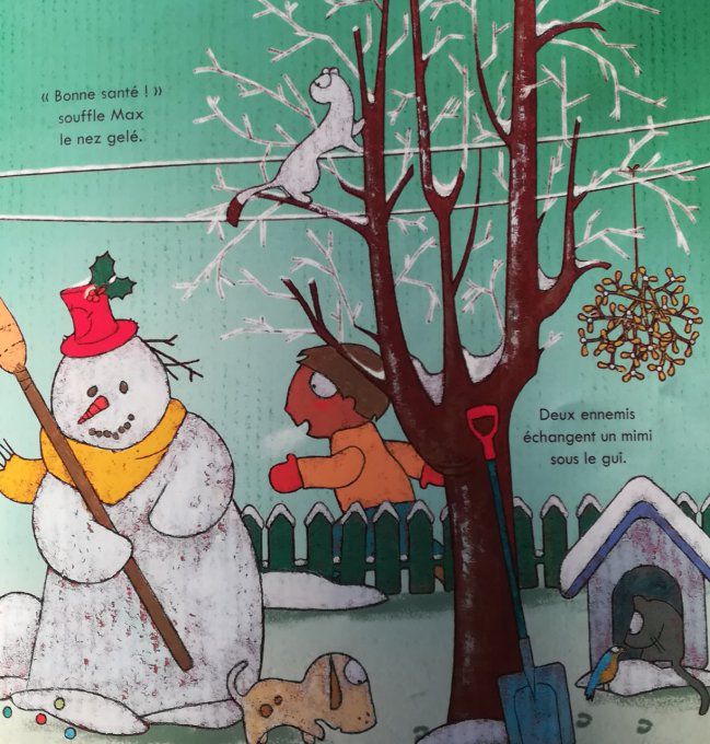Un album qui fait découvrir aux bouts de chou les joies de l'hiver : bonhommes de neige et de pain d'épice, cadeau de Noël, boule de gui, pâte à crêpes, carnaval... Le lecteur suit les aventures de deux personnages sympathiques, Sam (un petit garçon) et Cid (son chien). Dans chaque planche, un chat, une hermine, et une mésange mènent leur petite vie en parallèle ; les enfants ne manqueront pas de les débusquer.