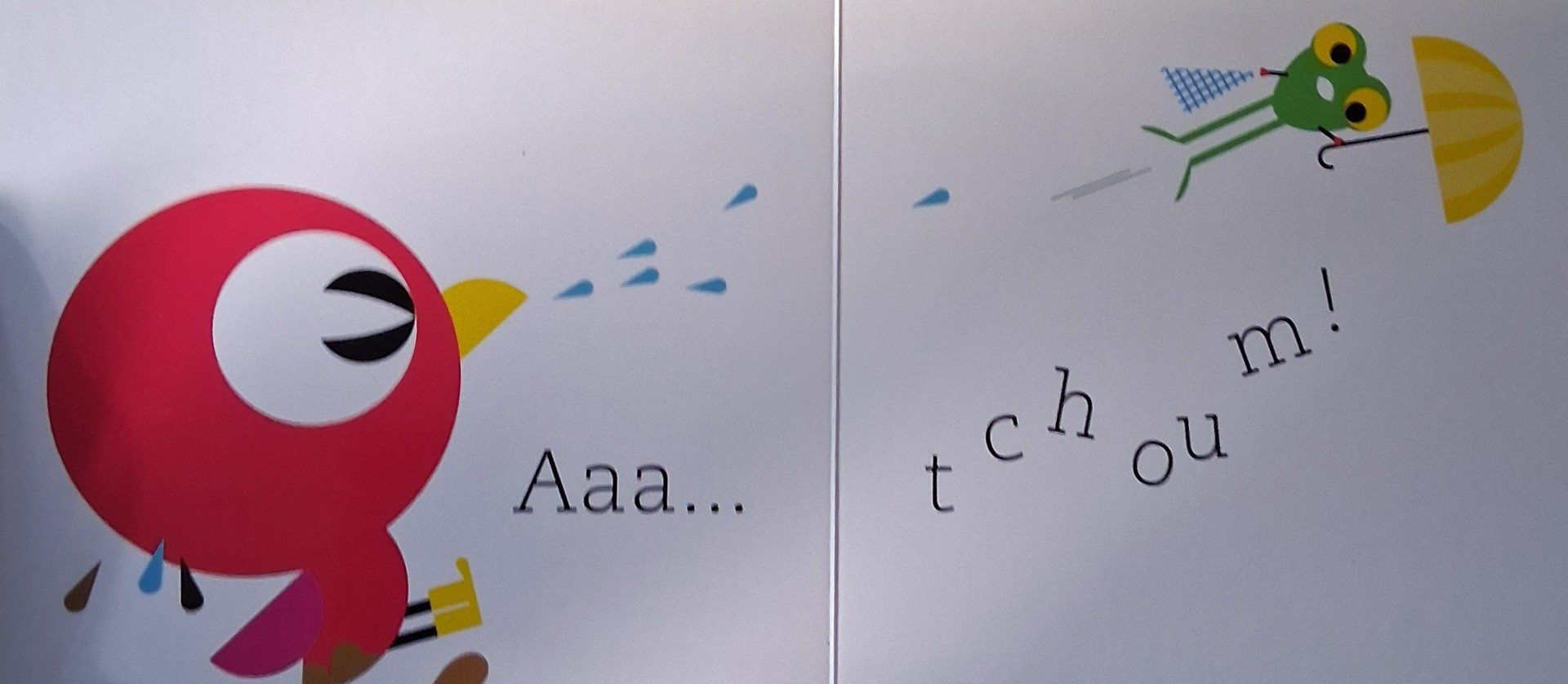 Saute dans les flaques ! Sploutch ! Par terre... Gla-gla... Vite, vite, vite... dans l'eau chaude du bain. L'eau, oh là là, c'est chouette !