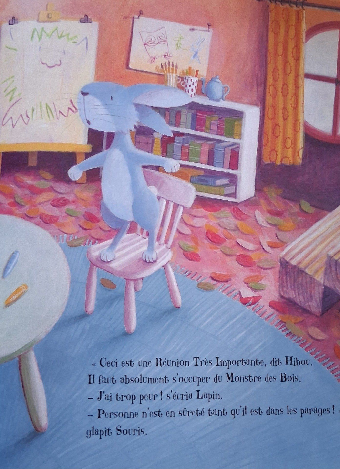 Par une sombre nuit d'orage, Hibou, Souris et Lapin redoutent la venue du terrible monstre des bois. Mais les trois amis vont bientot découvrir que les monstres ne sont pas toujours aussi méchants qu'on ne le pense.