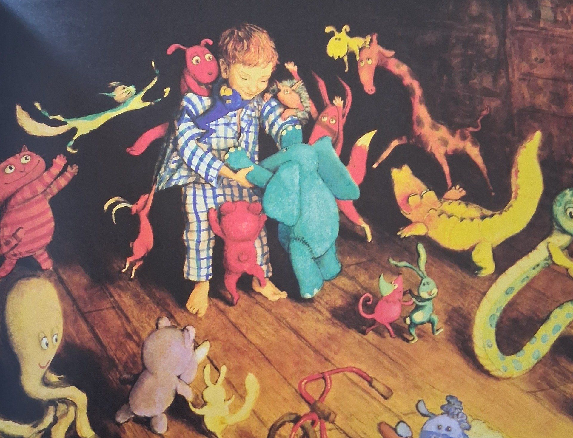 Il y a parfois des nuits magiques. Vous vous endormez, un bruit vous réveille, vous vous levez, vous allez voir ce que c’est et en ouvrant une porte – que pourtant vous connaissez bien – vous entrez dans un monde extraordinaire. Un monde où tout ce que vous avez un peu oublié avec le temps en grandissant, et en particulier vos peluches adorées, ressurgit devant vous et vous aide à fabriquer, autrement dit à écrire et dessiner des histoires par exemple comme celle-ci.