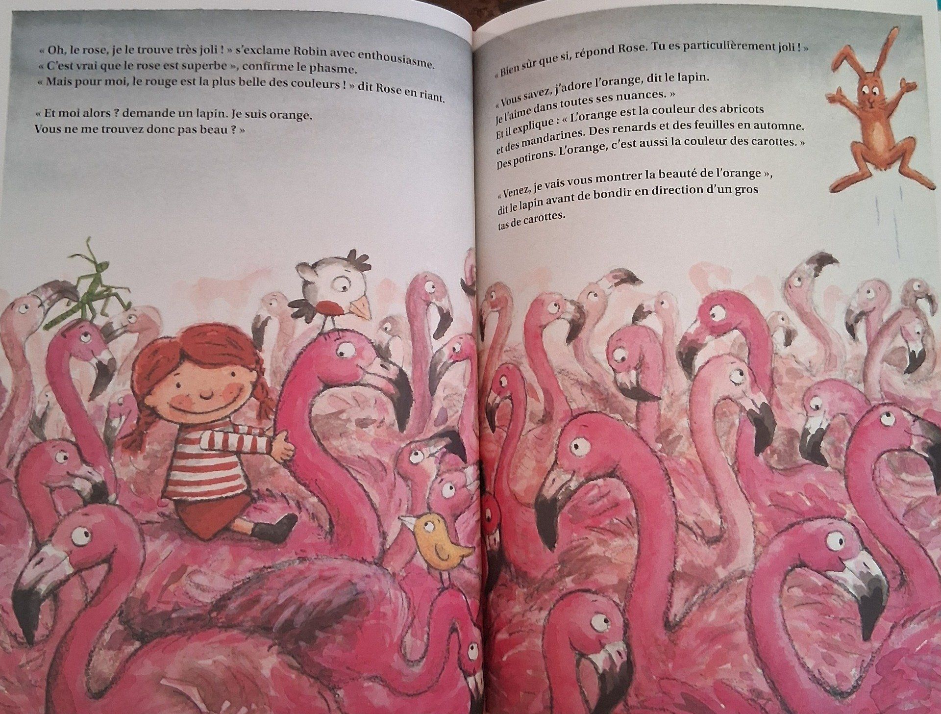 Rose aime toutes les couleurs mais c'est le rouge qu'elle préfère. Le canari aime le jaune, le phasme aime le vert, le rose a les faveurs du flamant...